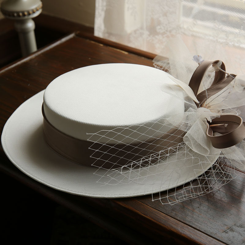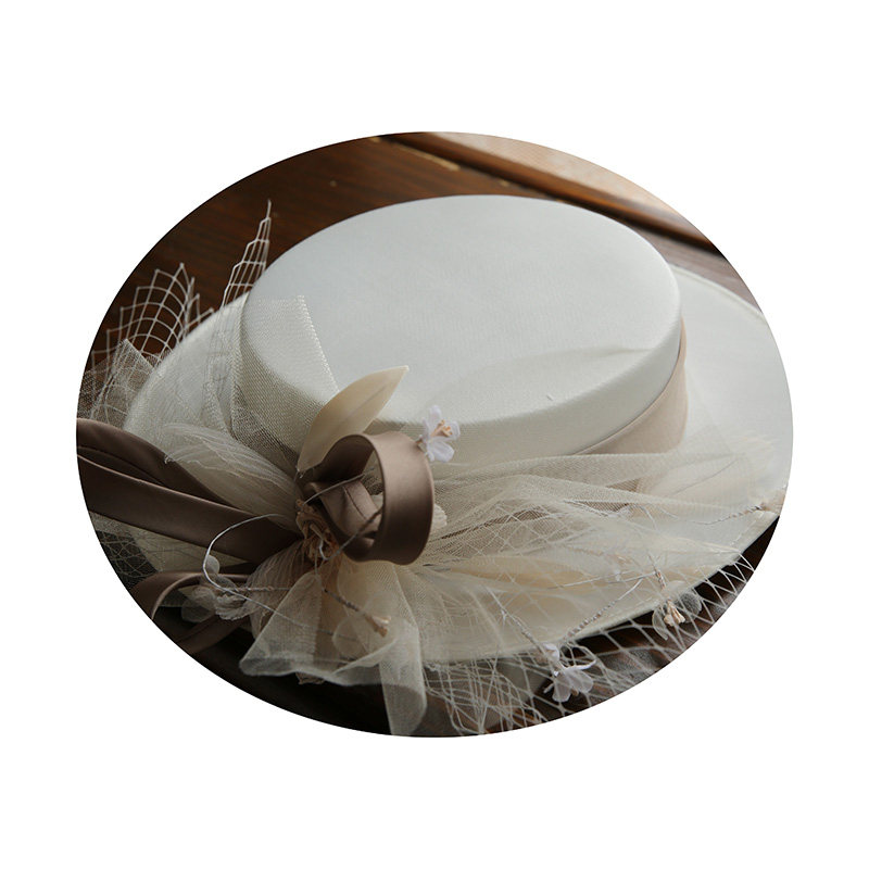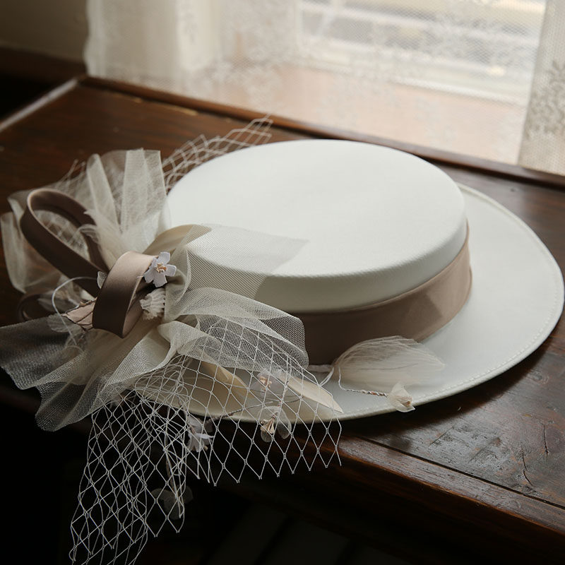法式 超仙白色缎面气质礼服写真旅拍复古配饰 优雅婚纱礼帽2020新款