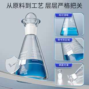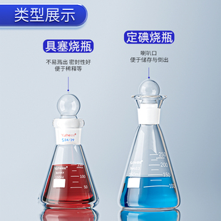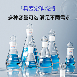 150 100 250 500 2000ml磨口锥形瓶耐高温实验器材 翌哲 1000 玻璃具塞三角烧瓶碘量瓶定碘烧瓶50