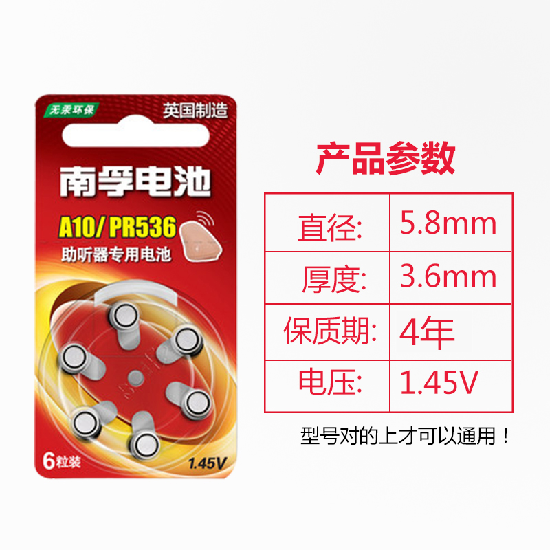 60粒南孚助听器电池A10号PR70锌空气纽扣电池PR536老人耳蜗助听器电子1.45v