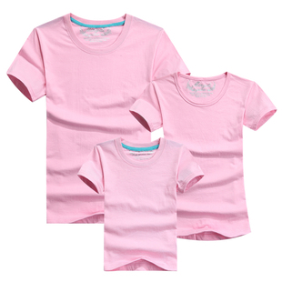 纯色T恤男女儿童装 亲子装 一家三口短袖 2025夏季 定制班服logo 夏装