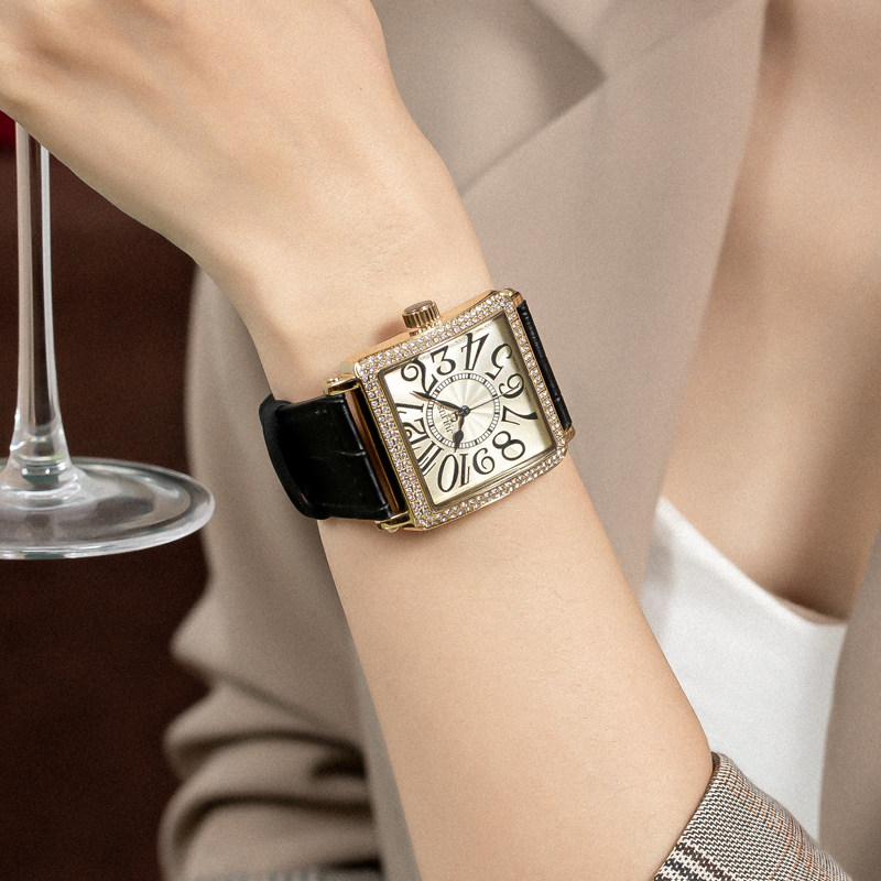 正品 复古大表盘水钻男女表防水石英表 聚利时正方形手表女韩国时尚