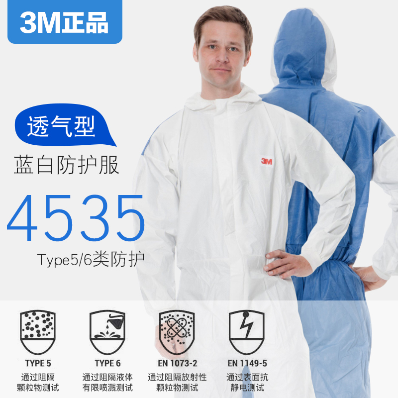 抗静电一次性喷漆防尘服4545工作服装 4535连体带帽防护服4532