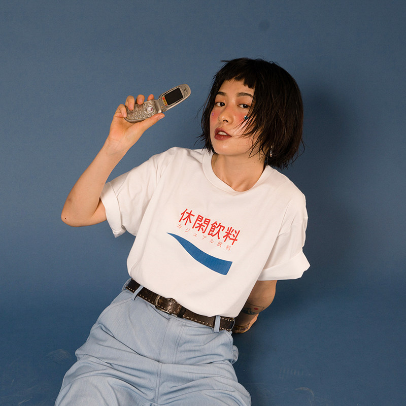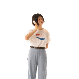 休闲饮料chill logo设计夏圆领百搭情侣七夕 drink宽松白T恤女短袖
