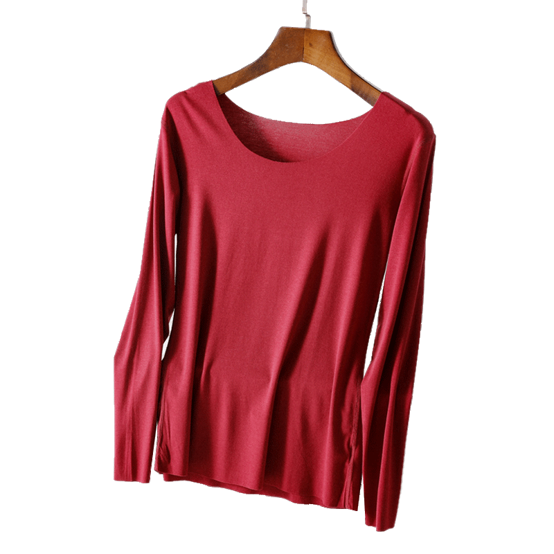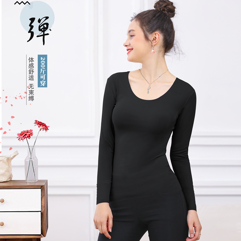 百搭长袖 圆领秋衣修身 T恤女秋 女内搭纯色大码 莫代尔无痕打底衫