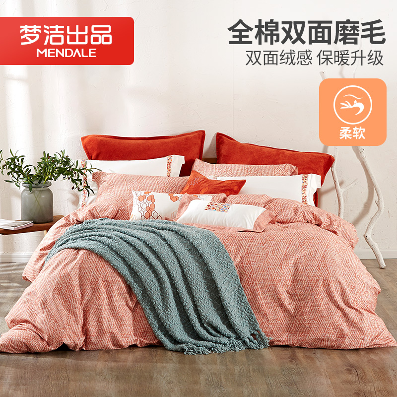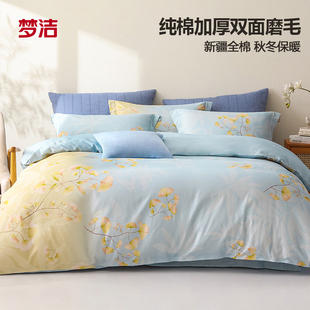 梦洁家纺纯棉磨毛四件套加厚1.2全棉1.5m1.8米床梦洁248x2.48被套