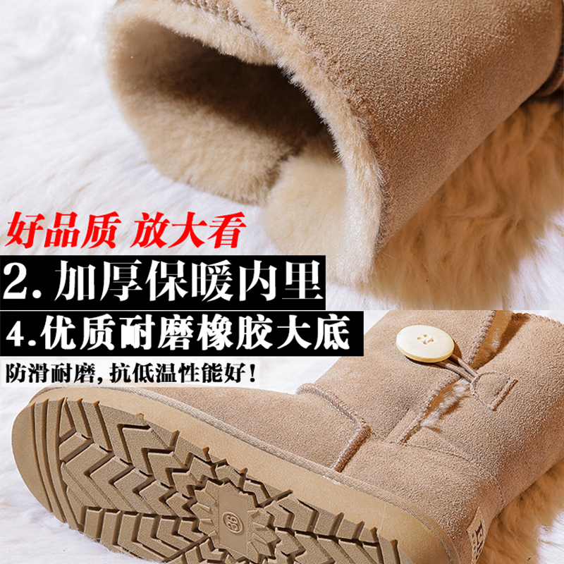 棉鞋 学生防滑保暖时尚 真皮雪地靴女中筒加厚皮毛一体女鞋 2025新款