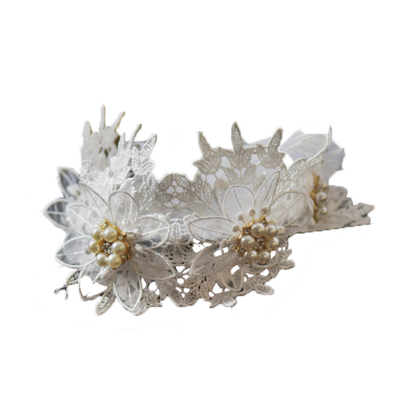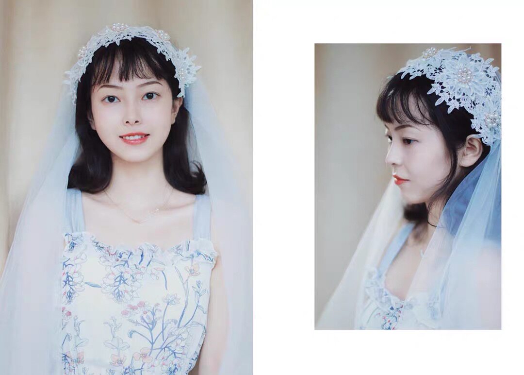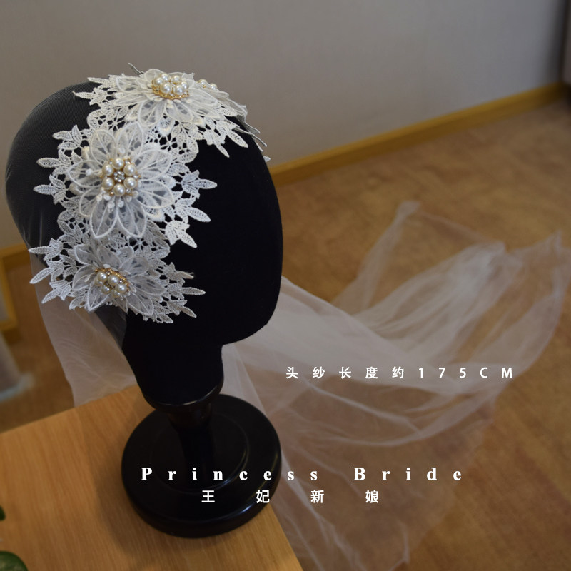 原创新款 拖尾新娘婚纱软纱头饰超仙 复古珍珠拍照道具发箍头纱长款