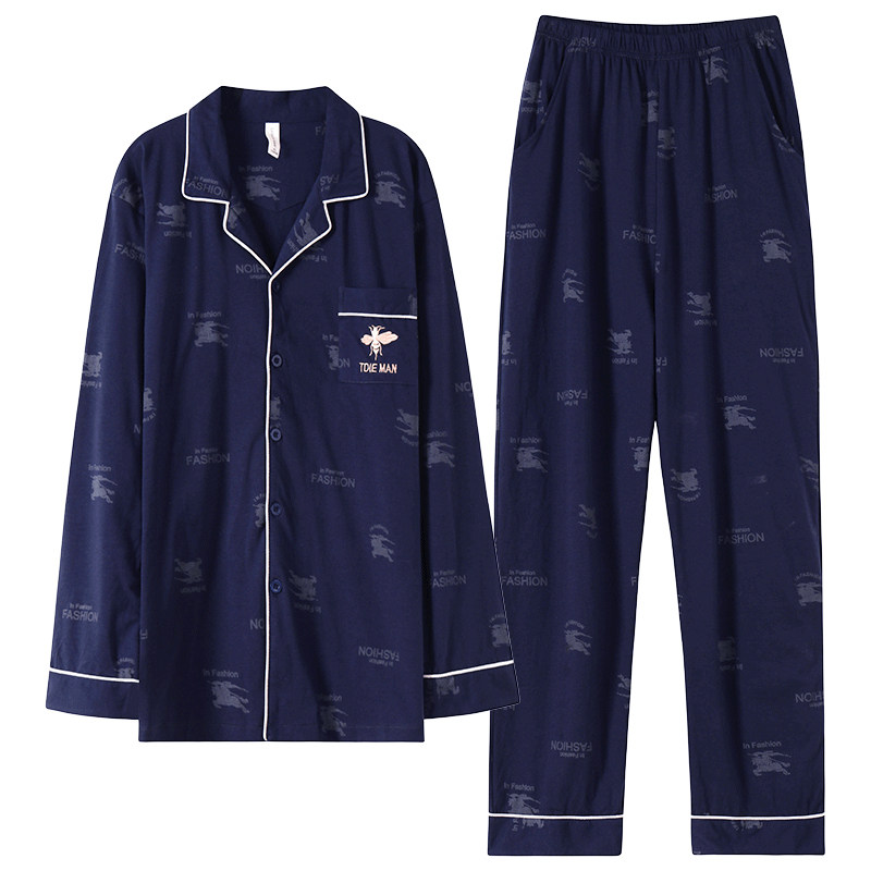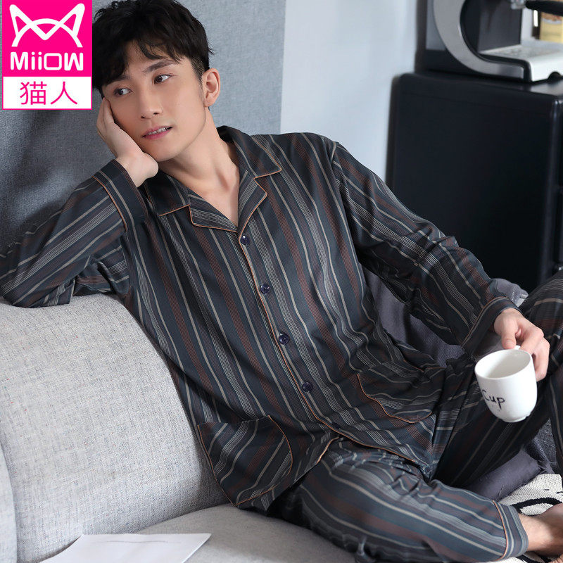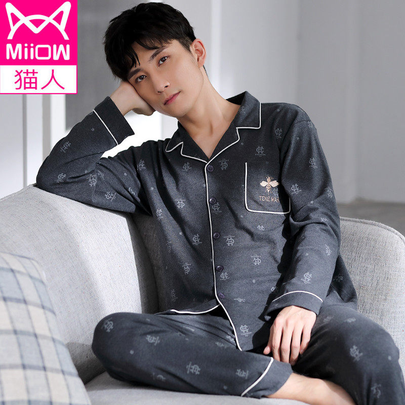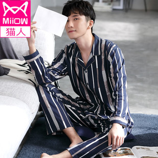 长袖 套装 长裤 全棉家居服夏加大码 睡衣男士 猫人40支精梳纯棉春秋季