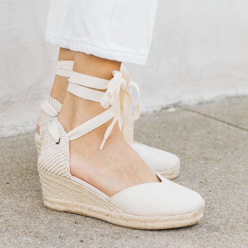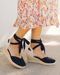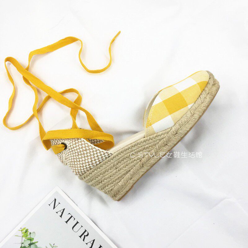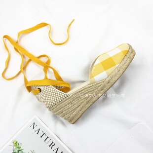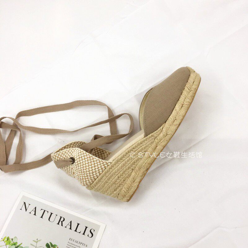 凉鞋 包头交叉绑带海边女度假高跟大码 草编坡跟麻底鞋 欧美春夏新款