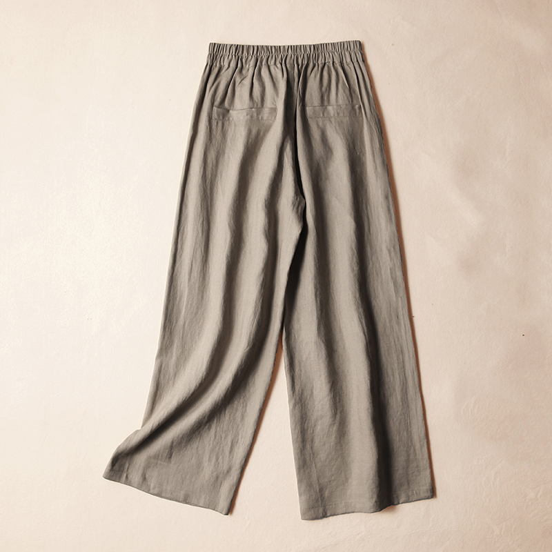 高腰宽松洋气小个子休闲裤 亚麻阔腿裤 女夏垂感九分直筒棉麻大码