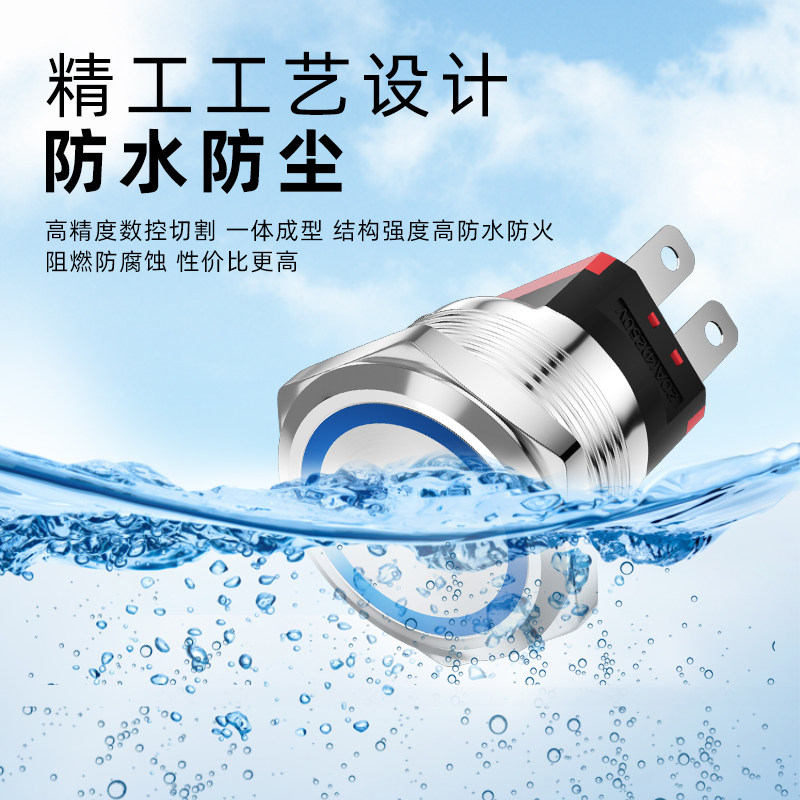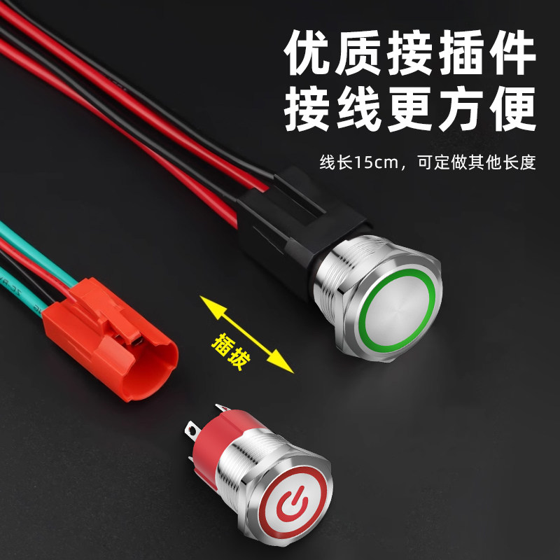 22mm 20A15A大功率金属按钮带灯大电流点动复位自锁开关12