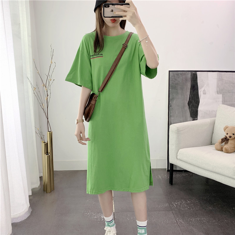 过膝体T恤大码 t恤连衣裙长款 睡裙长裙子 纯棉孕妇懒人短袖 2024新款