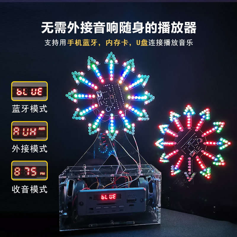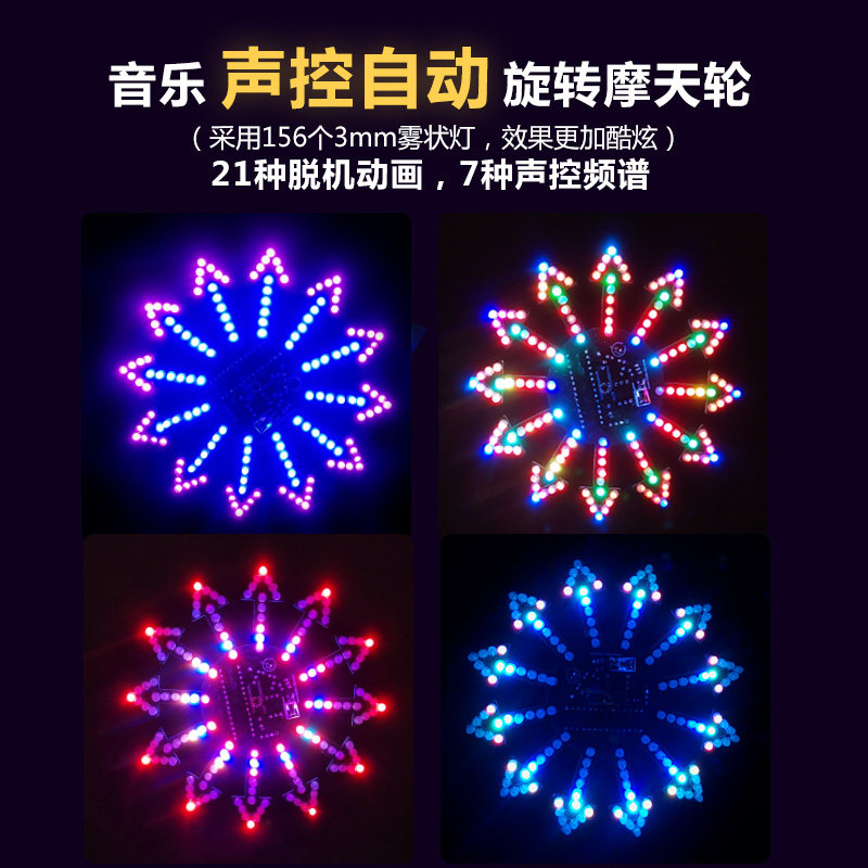 七彩LED灯音乐旋转摩天轮diy套件蓝牙音箱制作电子元 件焊接练习板