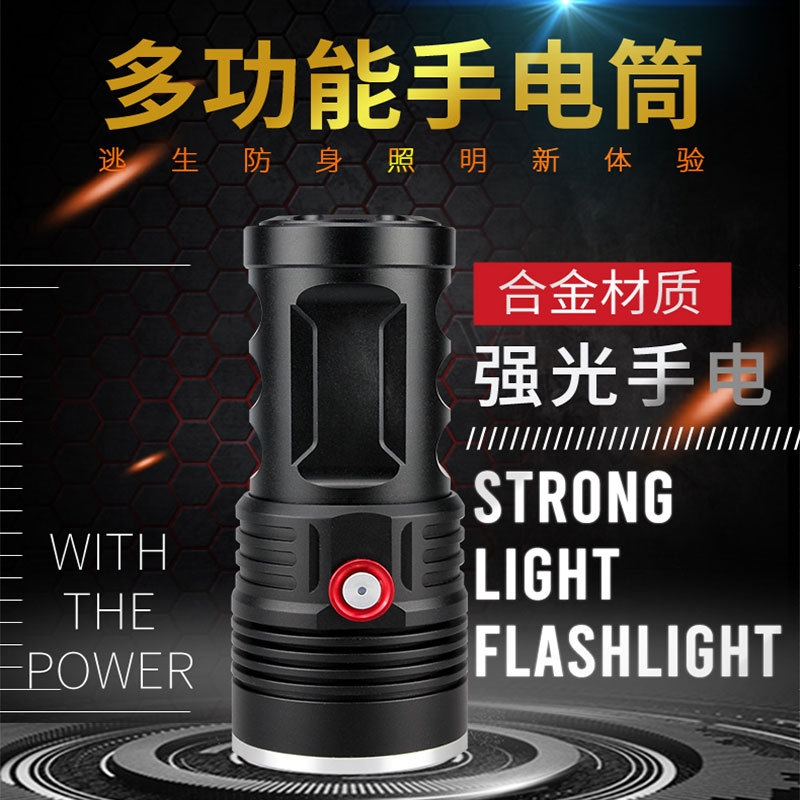 手电筒强光可充电USB户外超亮远射家用应急灯特种兵防水迷你学生