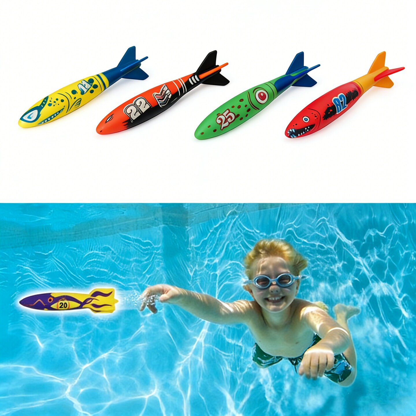 儿童水下沉底鱼雷海草互动玩具小孩水底训练憋气游泳潜水棒潜水环