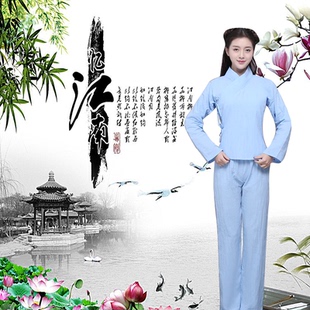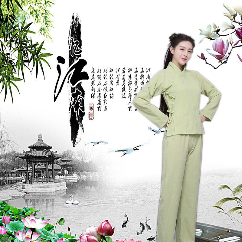 春秋交领睡衣褙子打底禅休练功可定制 古装 汉服女中衣内衣长裤 套装