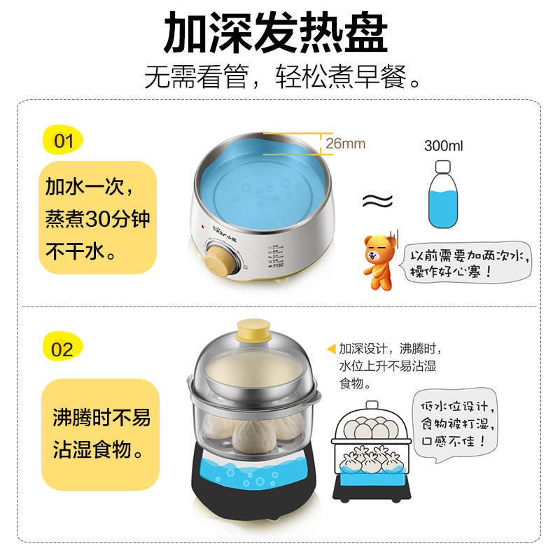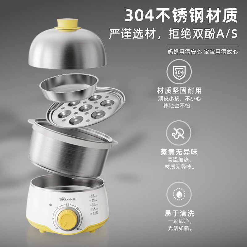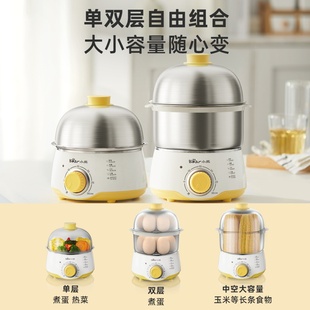 小熊蒸蛋器煮蛋器定时自动断电家用双层迷你不锈钢早餐机蒸蛋羹机