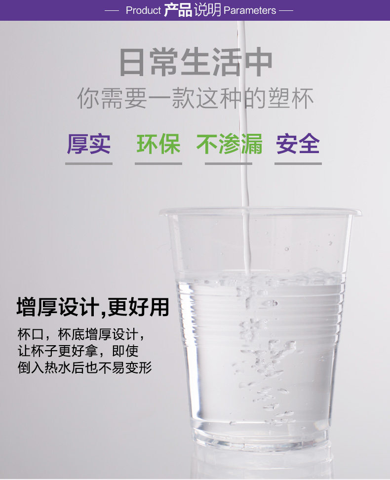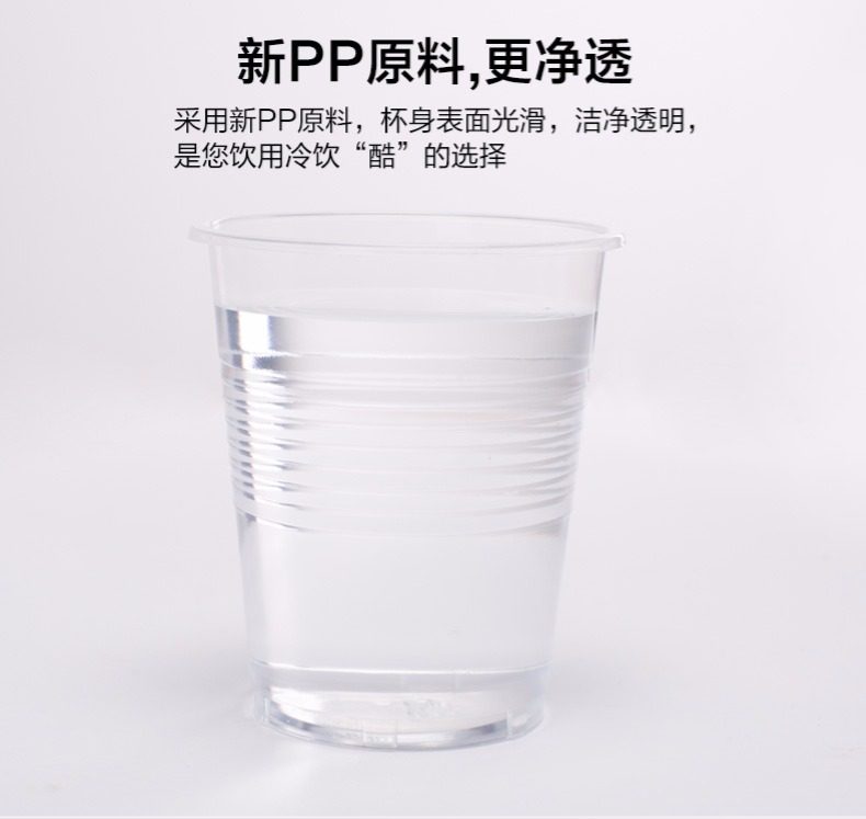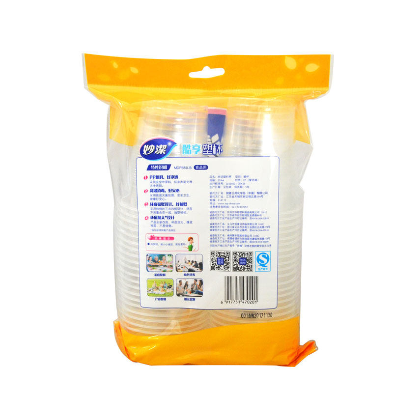 妙洁一次性塑料杯子320ml大杯50只装 航空杯饮杯 增厚酷杯