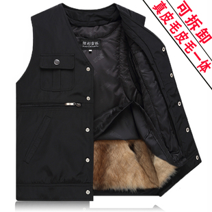 新款 爸爸坎肩女士中老年人冬 真皮毛一体加厚背心羊毛马甲保暖男士
