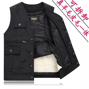 冬季 皮毛一体马甲男中老年羊毛背心加厚保暖棉坎肩羊皮马夹爸爸装