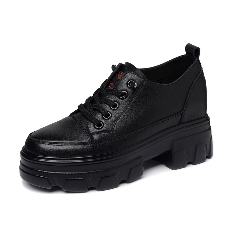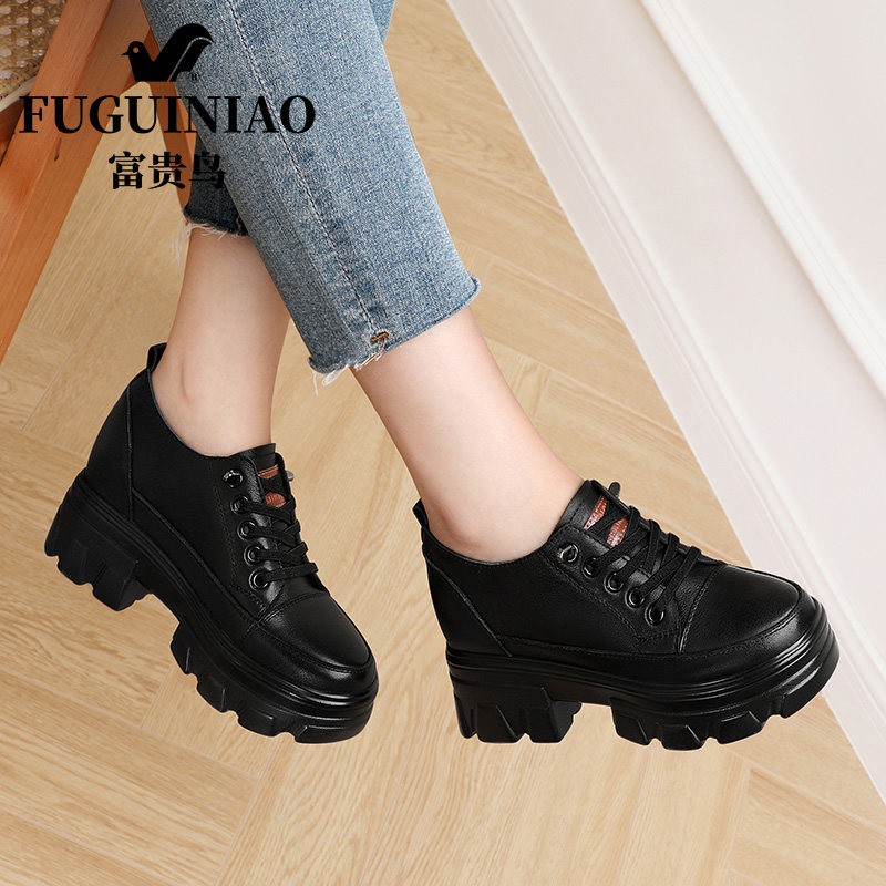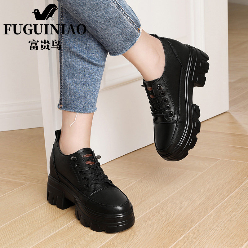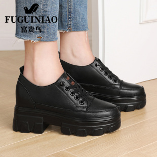 真皮黑色妈妈鞋 富贵鸟内增高深口单鞋 厚底女士皮鞋 秋季 女2026新款