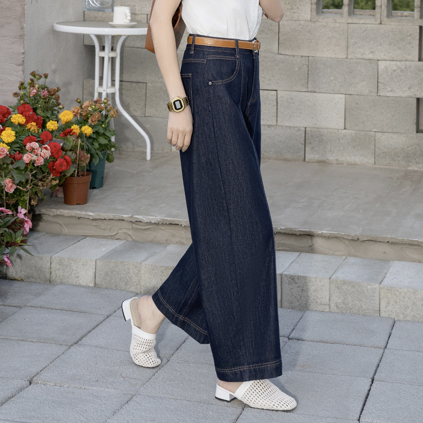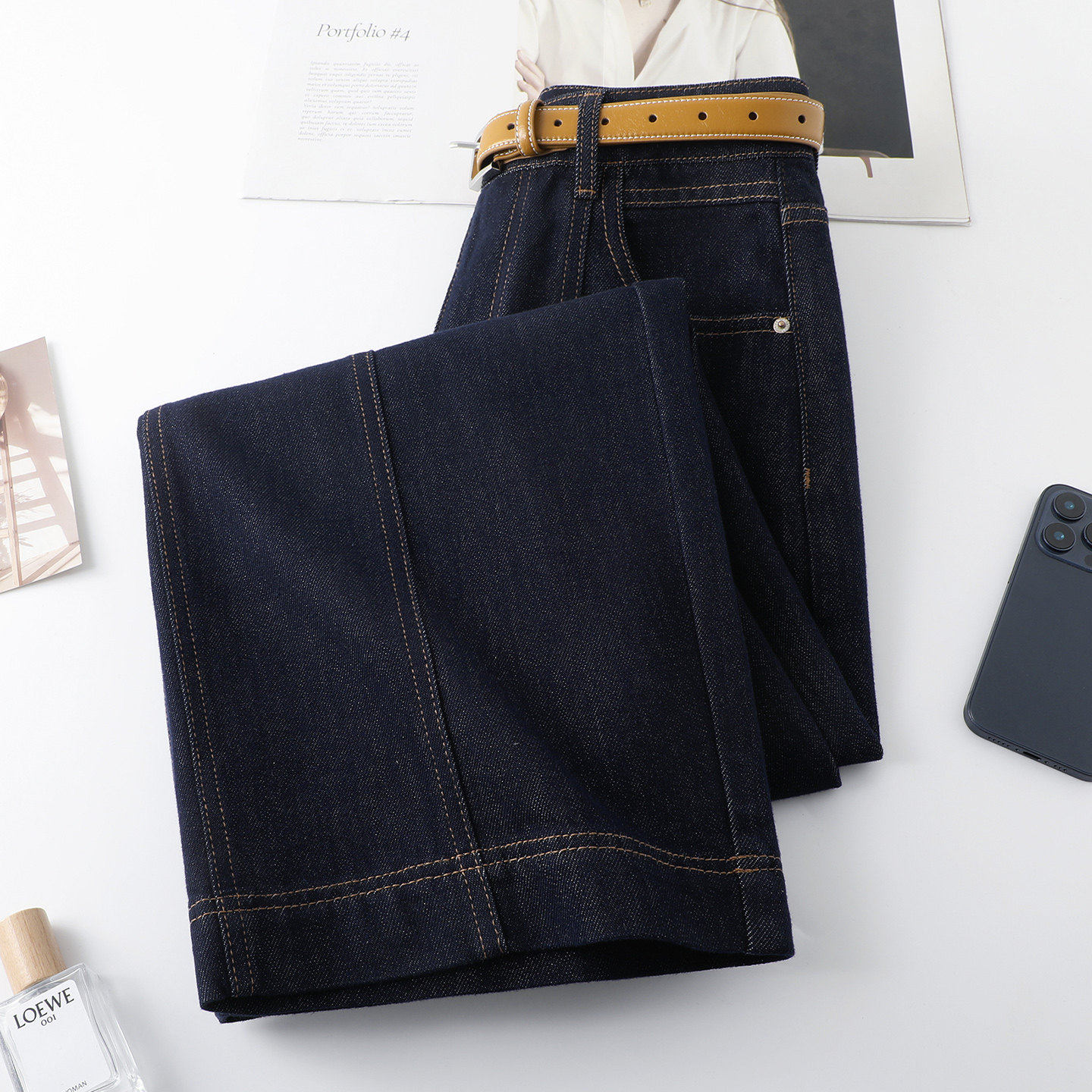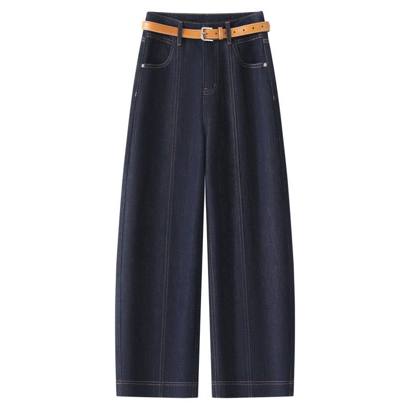 弯刀设计小个子休闲九分法棍裤 新款 女2026年春季 丹宁蓝阔腿牛仔裤