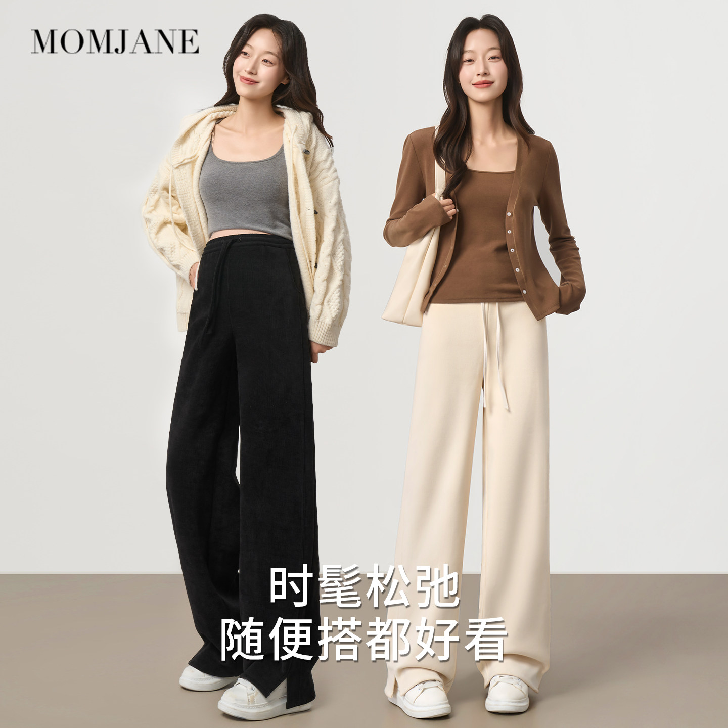高个子直筒休闲裤 加绒外穿无托腹不勒肚子阔腿长裤 子春秋季 孕妇裤