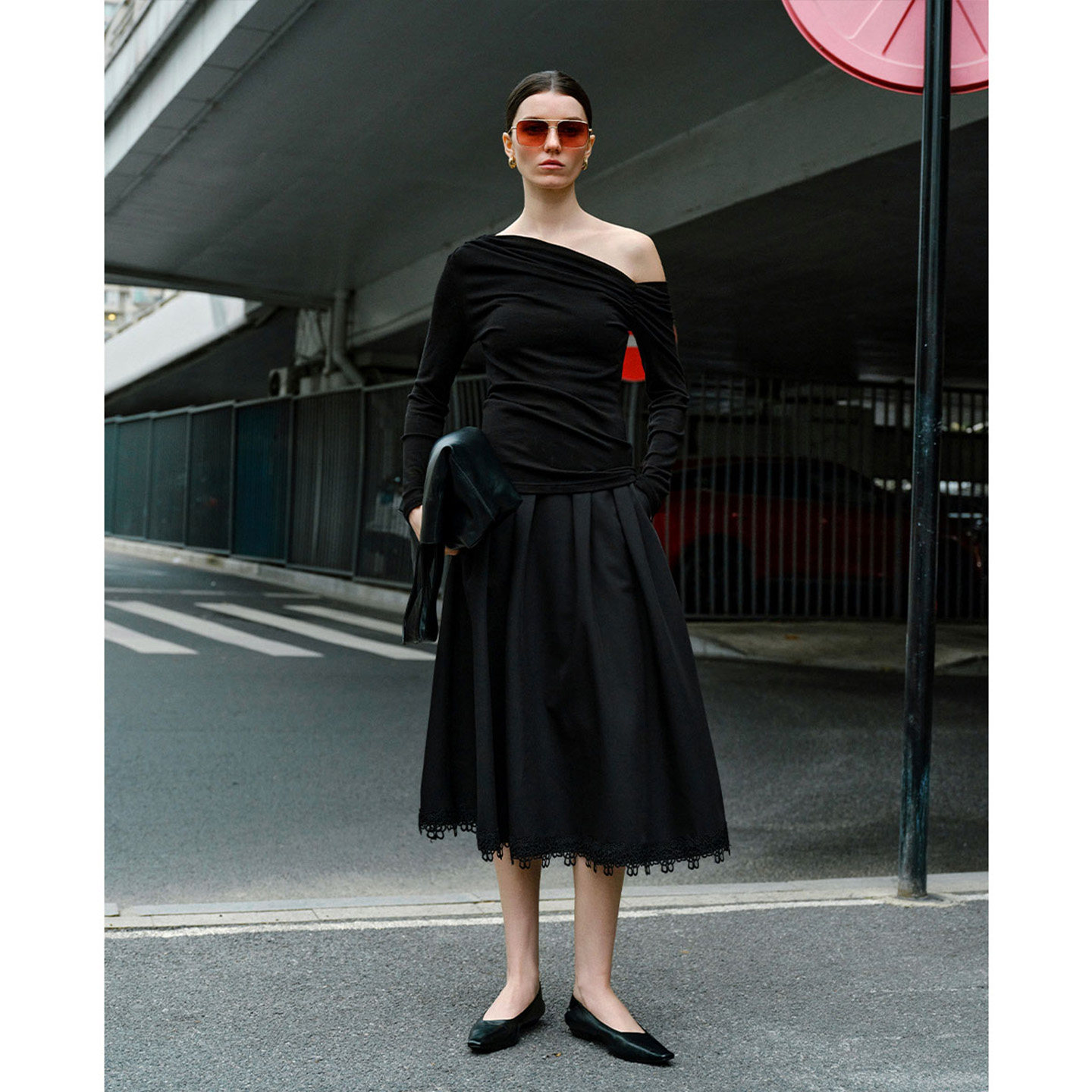GIOVANNI 高腰半身裙蕾丝素雅通勤中长裙A字裙子 VALENTINO春夏季