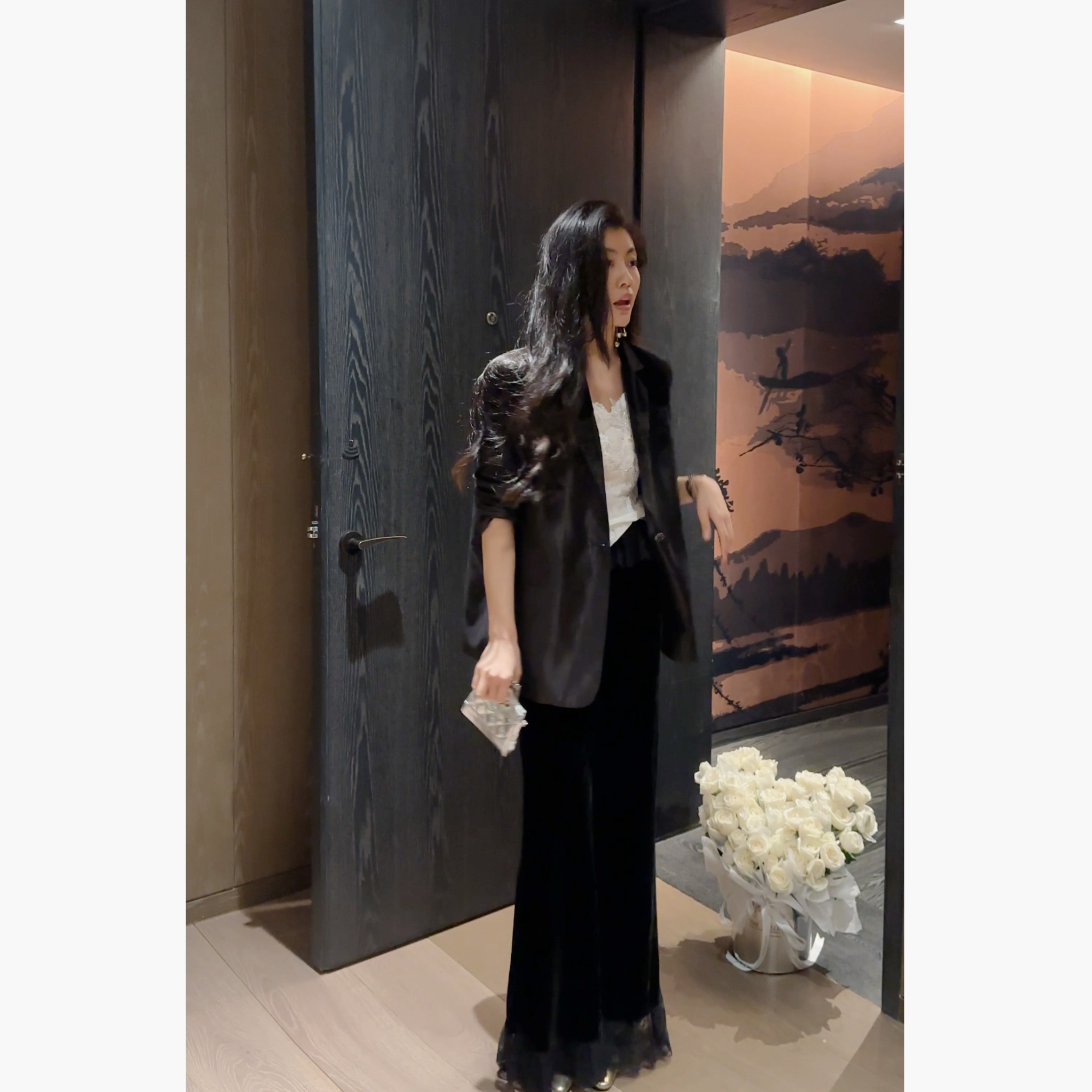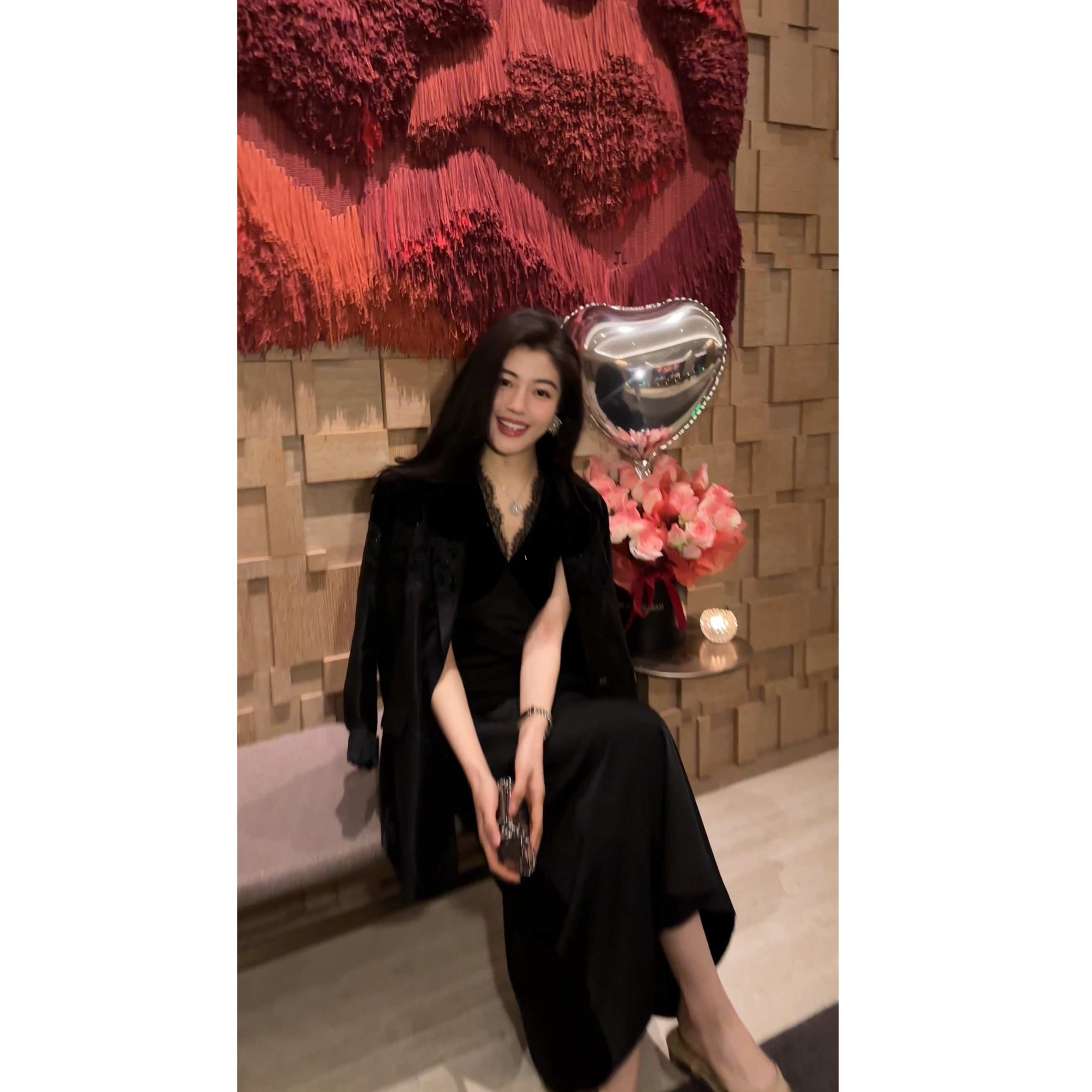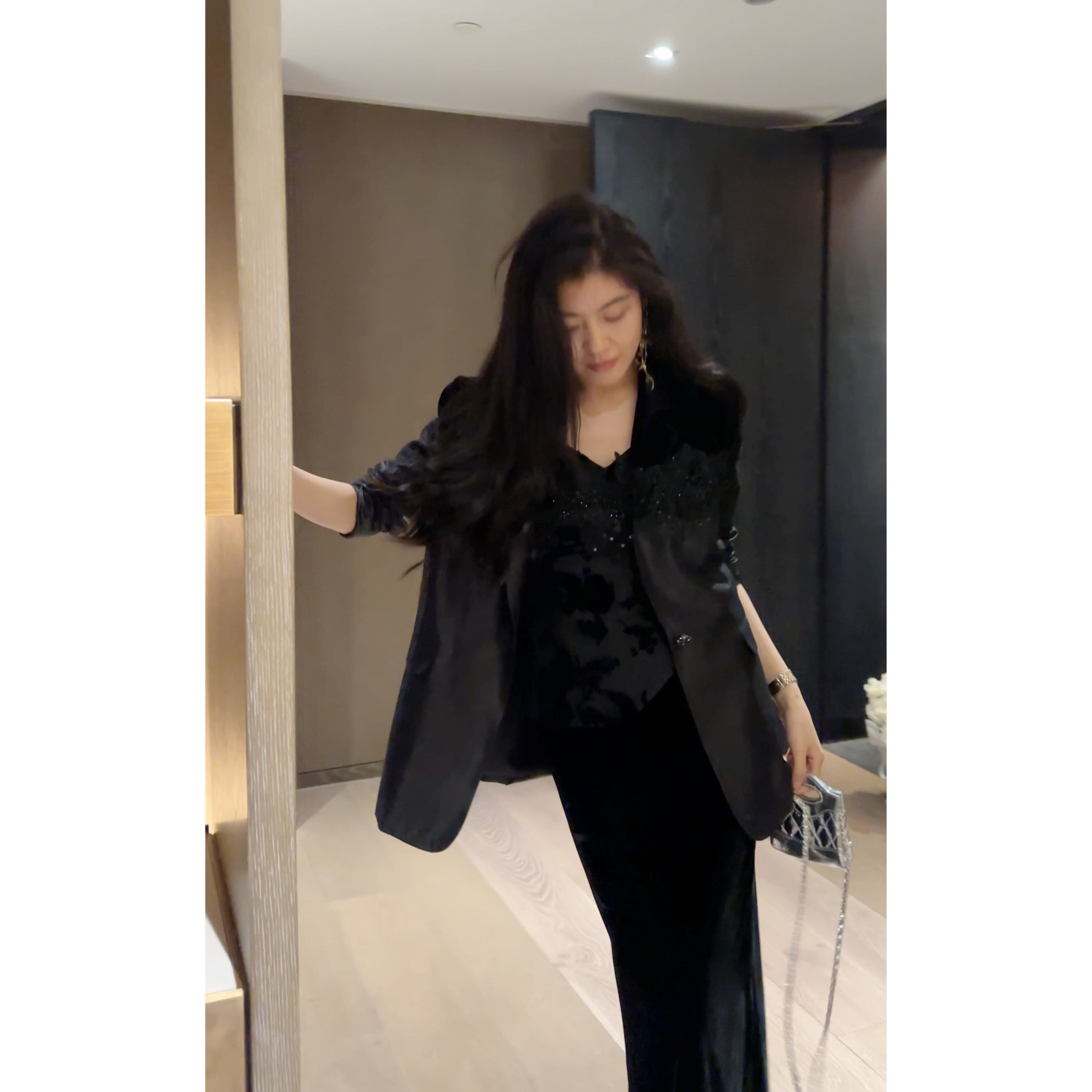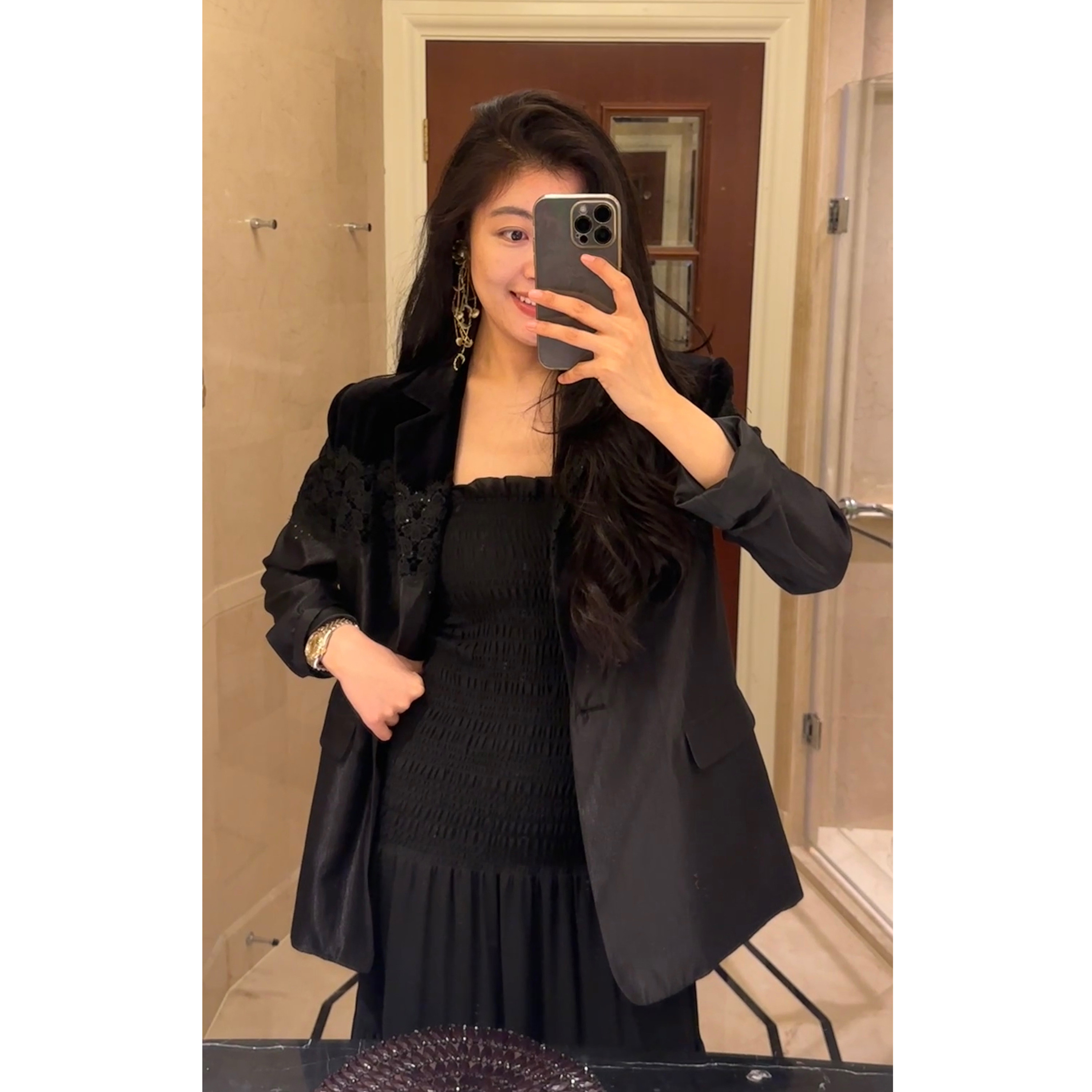 N.COU妮蔻26春新款 气质高级感百搭宽松黑色丝绒蕾丝拼接外套 时尚