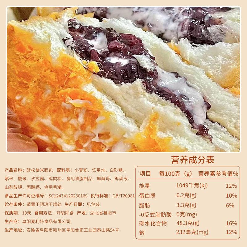 肉松紫米夹心吐司面包整箱早餐官方独立包装 蛋糕点三明治小零食品