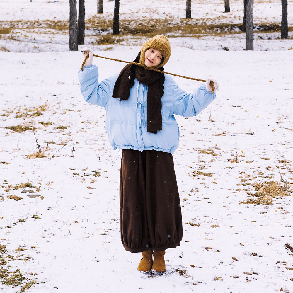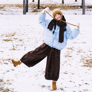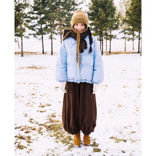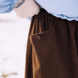 伴侣遮肉显瘦气球裤 古苔 秋裤 复古休闲羊毛阔腿裤 子 日系灯笼裤