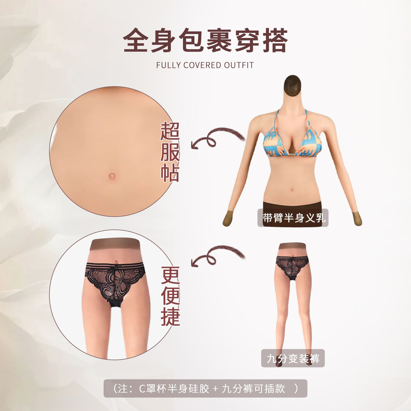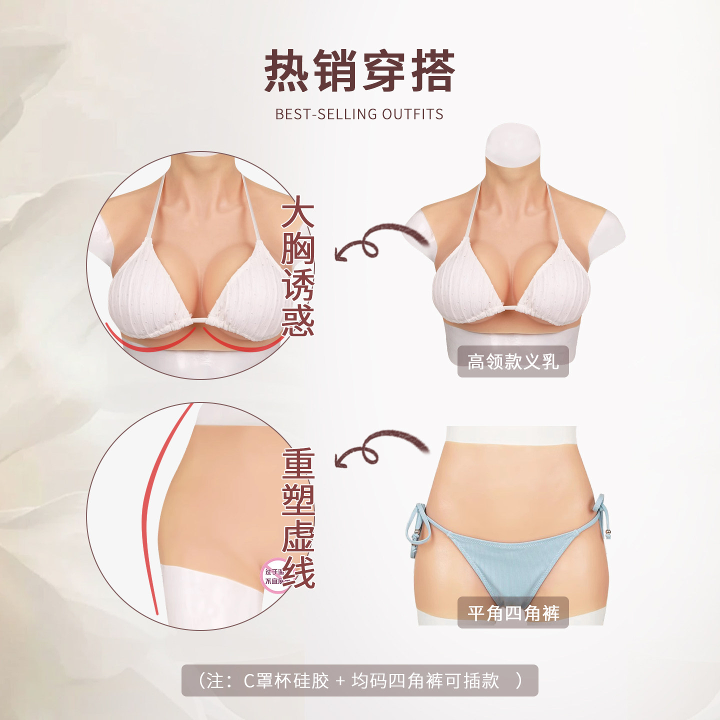 大佬主播专用分体假胸套装 弘姗仿真款 变装 女装 男用义乳假胸假阴裤