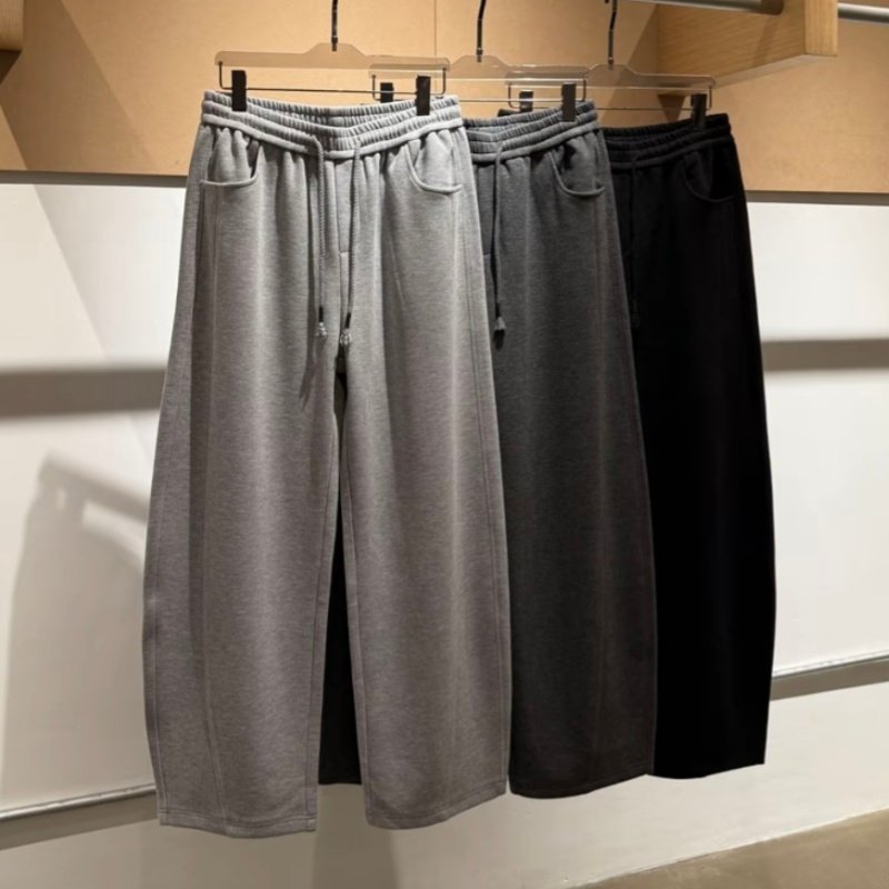 简约百搭加厚保暖运动卫裤 男士 重磅羊毛混纺阔腿直筒休闲裤 秋冬季