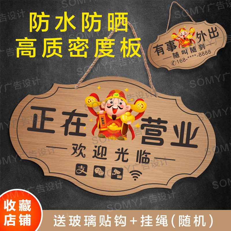有事外出门店挂牌营业门牌欢迎光临马上回来温馨提示空调开放挂牌