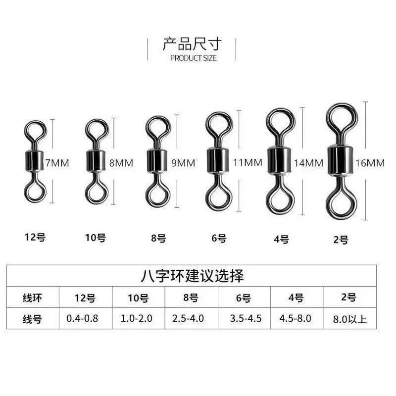 八字环连接器转环合金材质鱼线线组钓鱼配件8字环渔具海钓不生锈