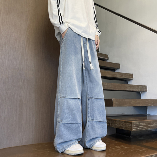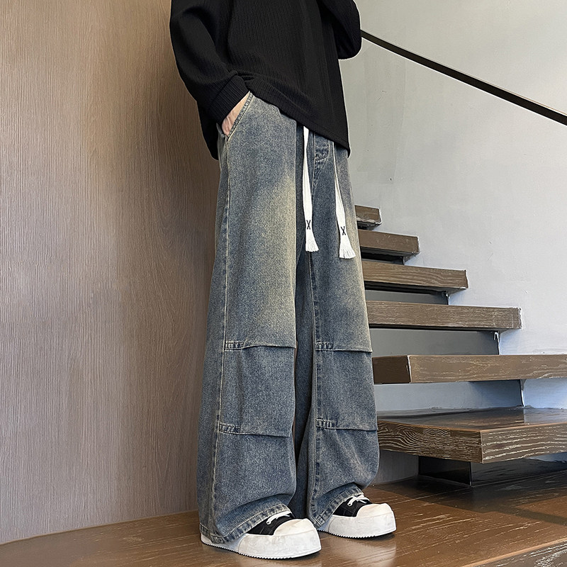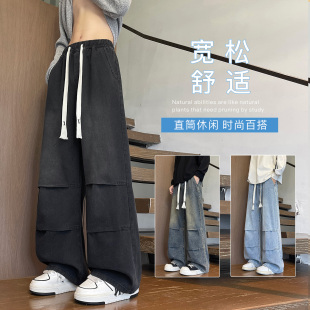宽松长裤 潮牌春秋新款 男生高街百搭款 小众拼接牛仔裤 青少年美式