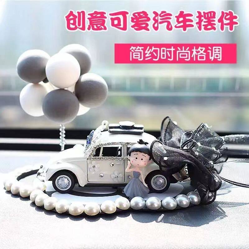 汽车摆件可爱小丸子车载摆件蝴蝶结汽车饰品香水座个性 女士车内装