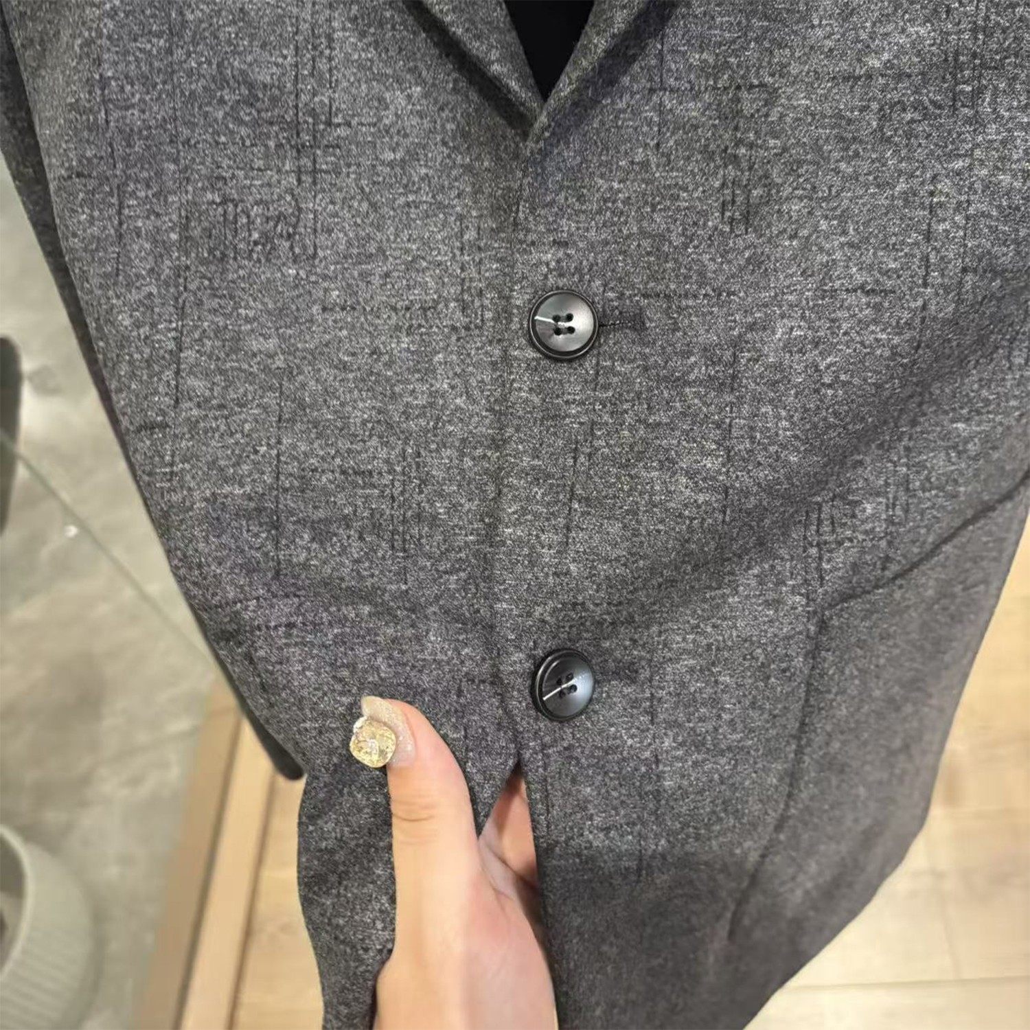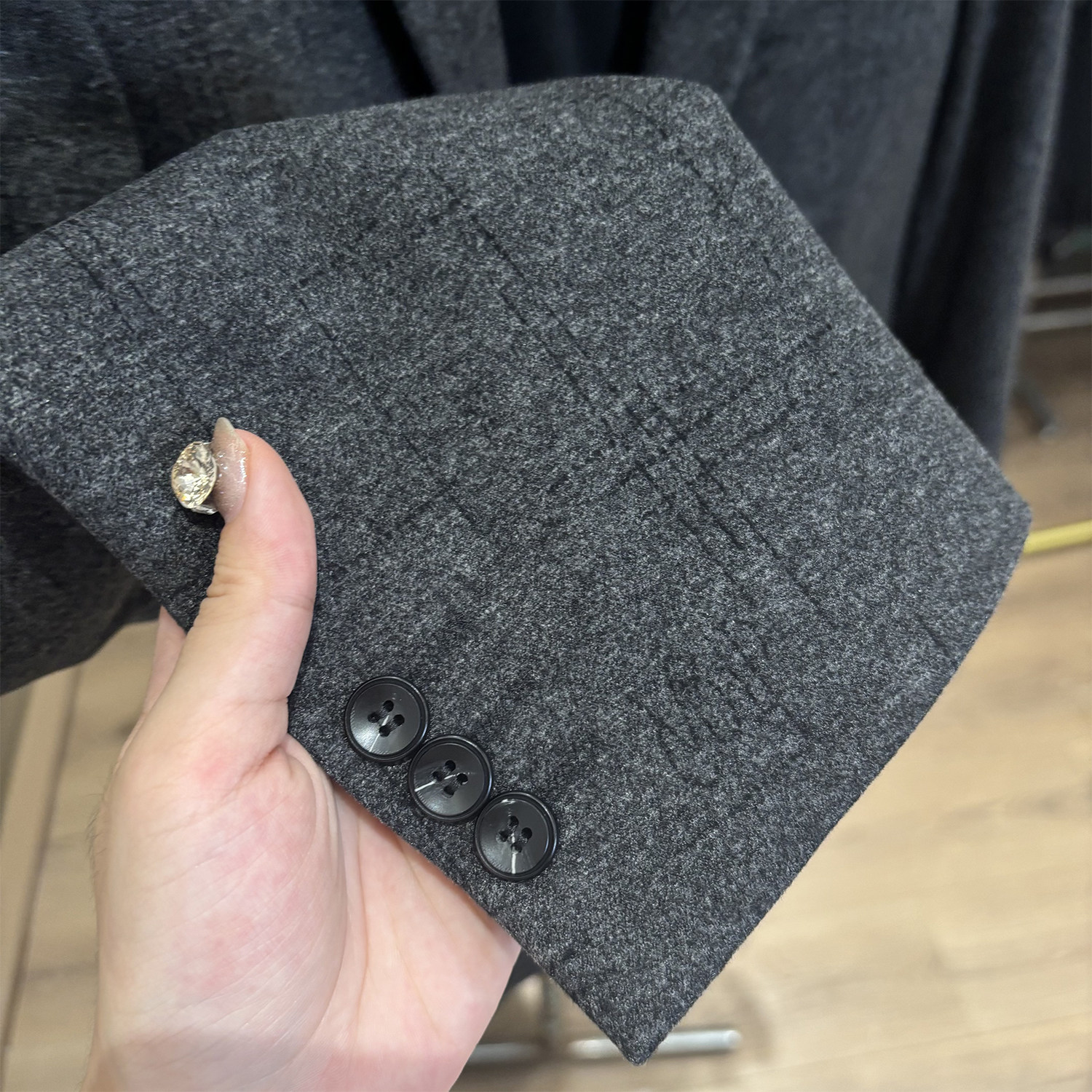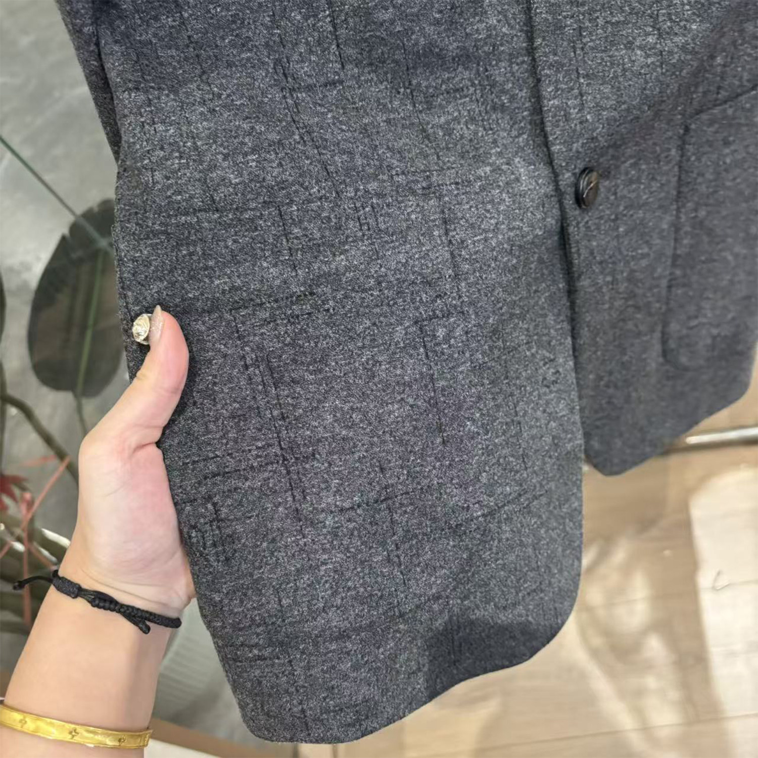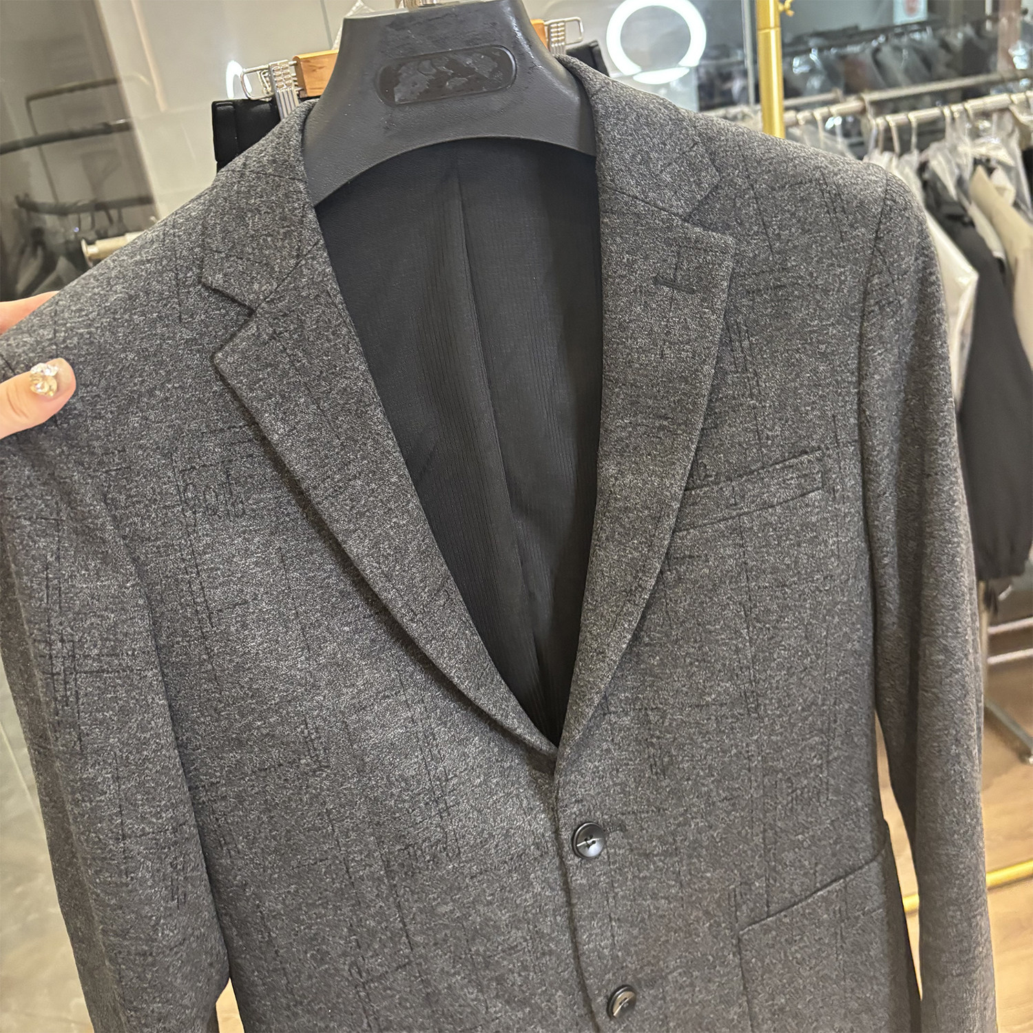 H家 男士 绒感弹力 秋冬厚款 商务休闲提花西服外套 高端垂感