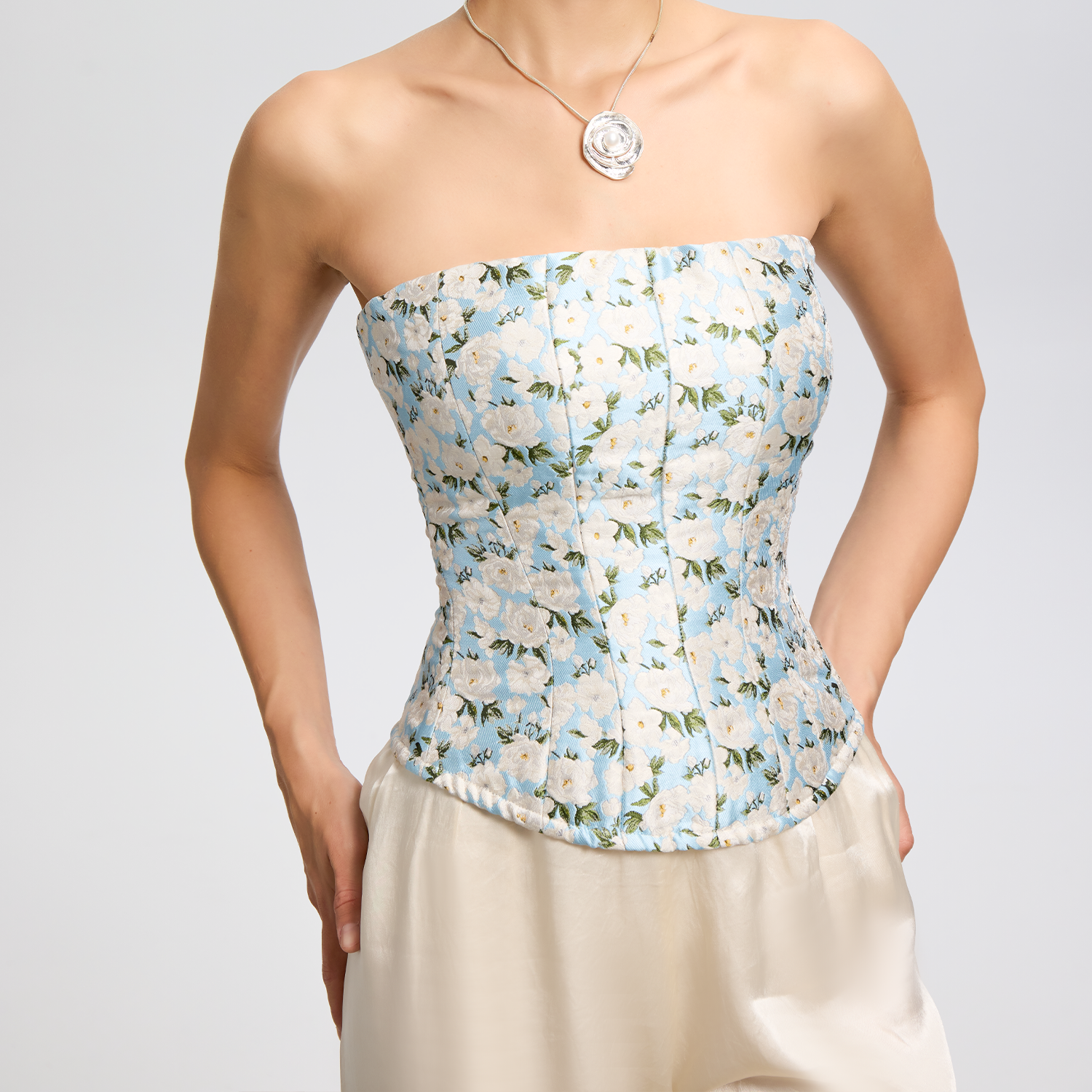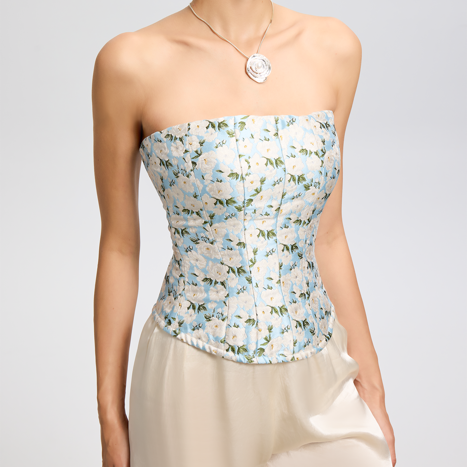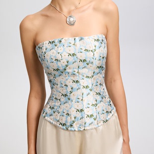 CORSELET 蓝山茶花立体浮雕印花鱼骨抹胸上衣复古典雅外穿胸衣女