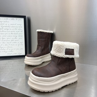 两穿中筒雪地靴女2025新款 短靴 荔枝纹厚底松糕套筒马丁靴保暖棉鞋