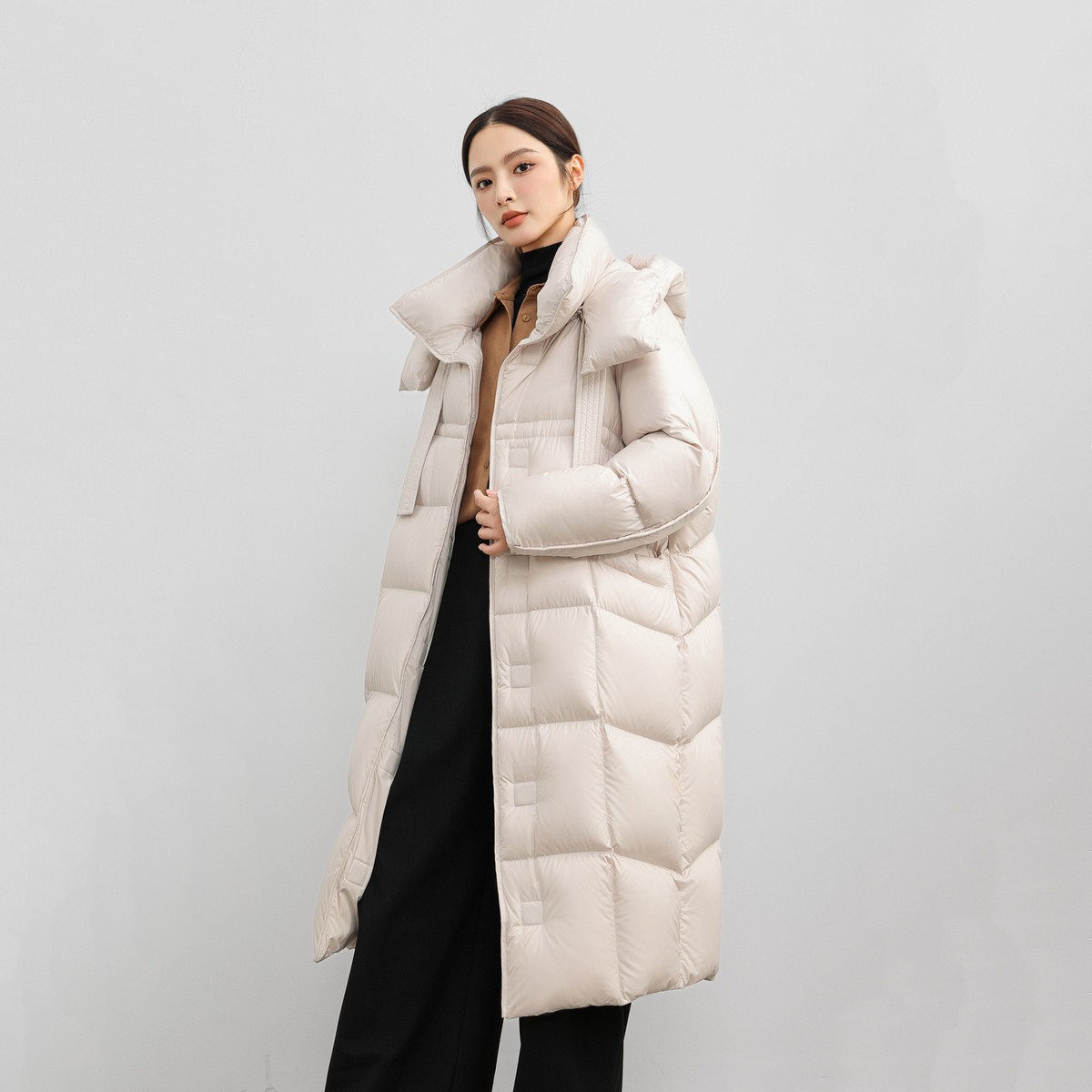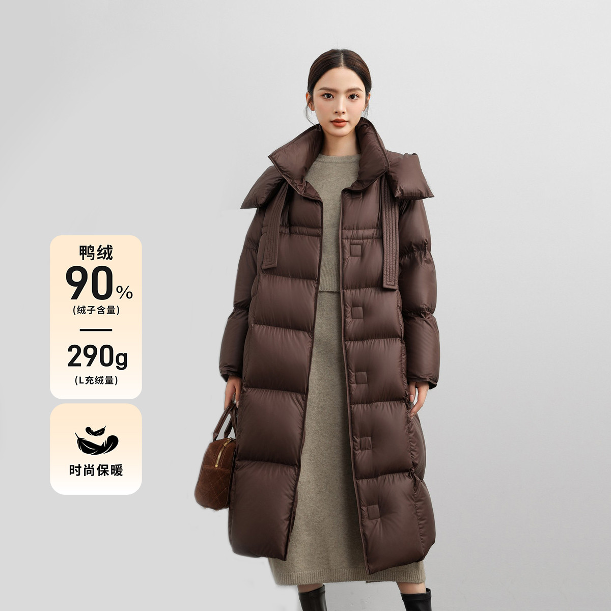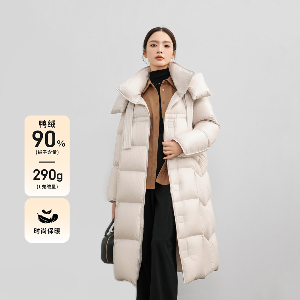 鸭宝宝秀场轻奢面包泡芙羽绒服高充绒长款 保暖可脱卸帽 厚款
