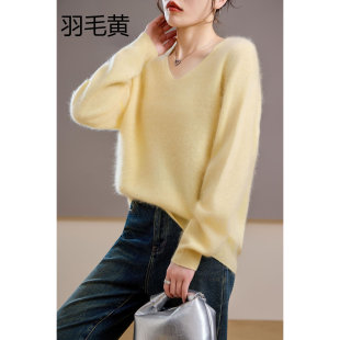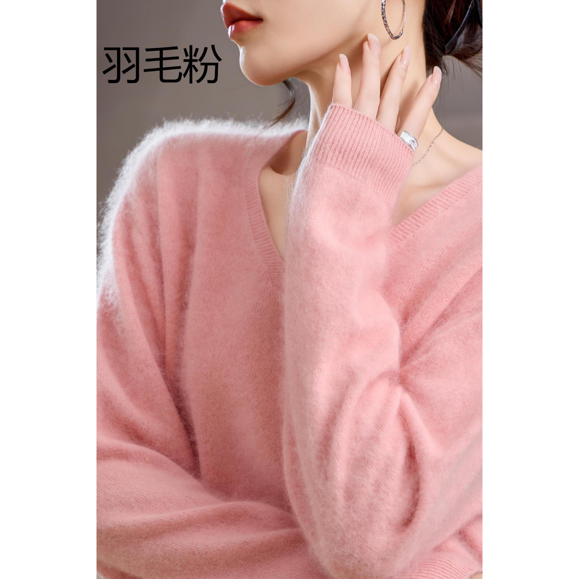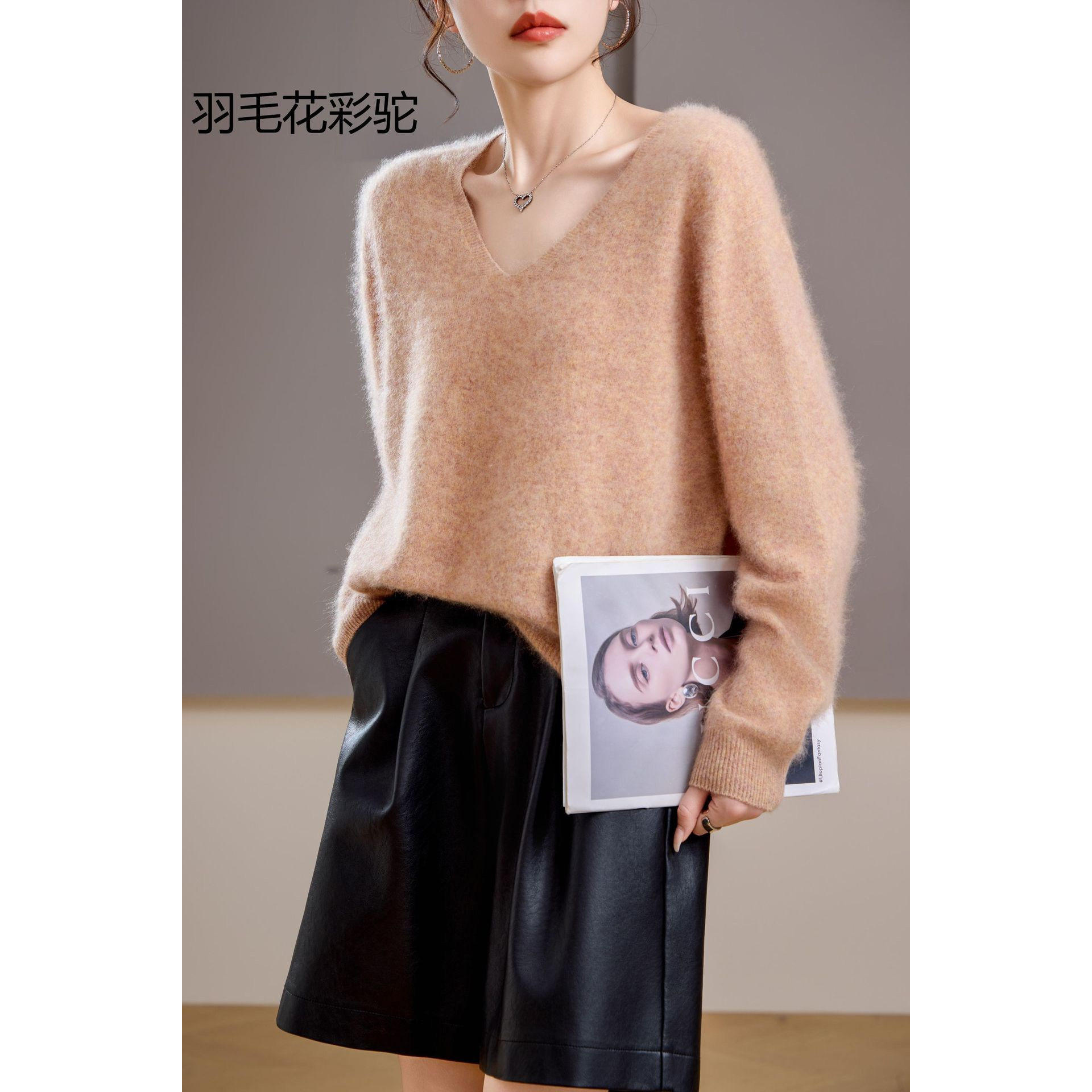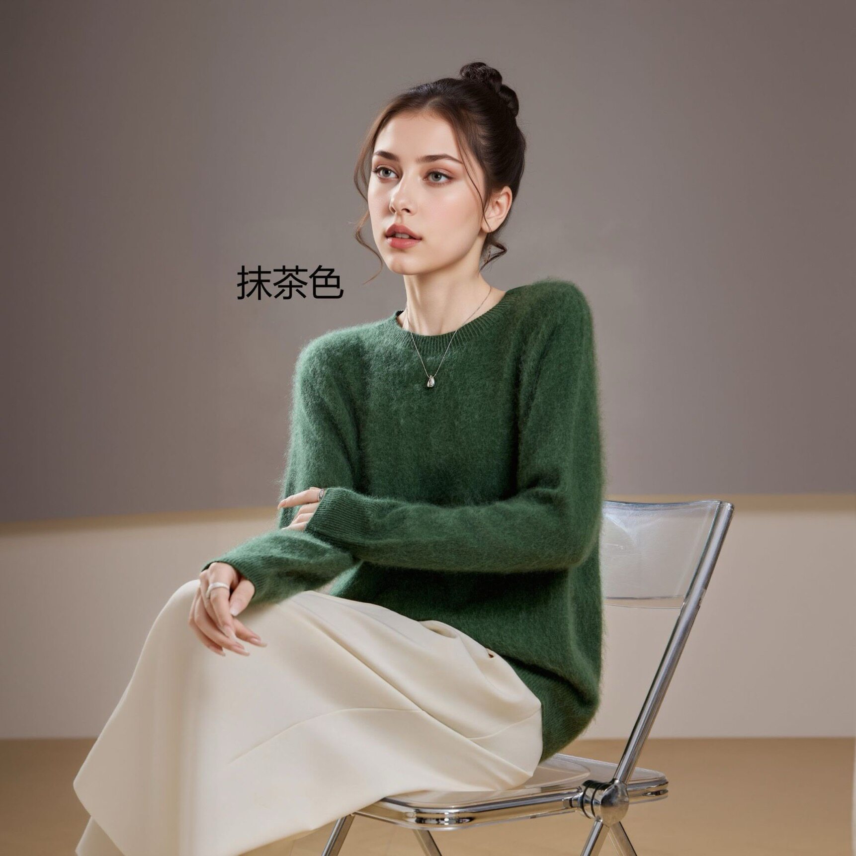嘉兴显白巨高级圆领宽松拉绒羊毛羊绒衫 秋冬 针织毛衣女显瘦气质款