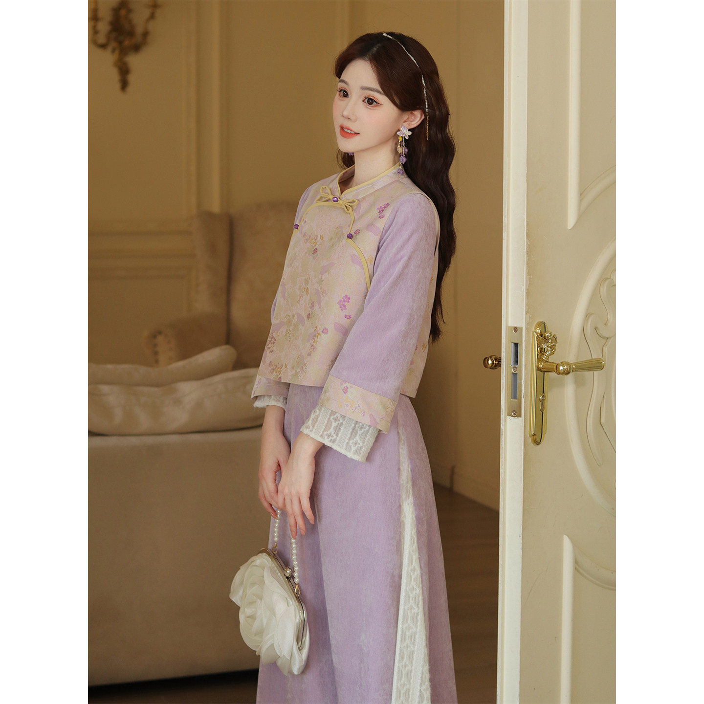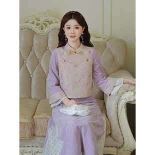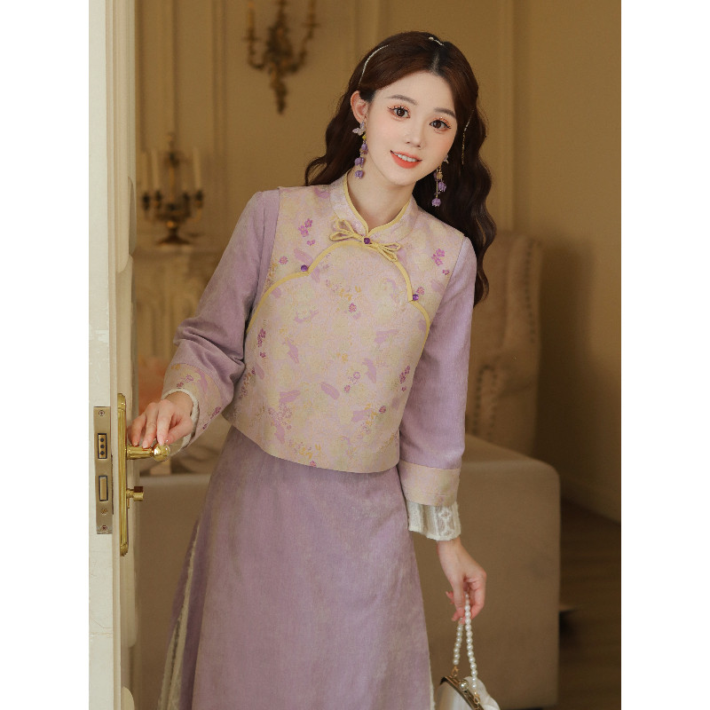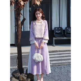 外套马甲三件套装 瑶西 秋冬裙子国风汉服新中式 紫色女款 锦花宴