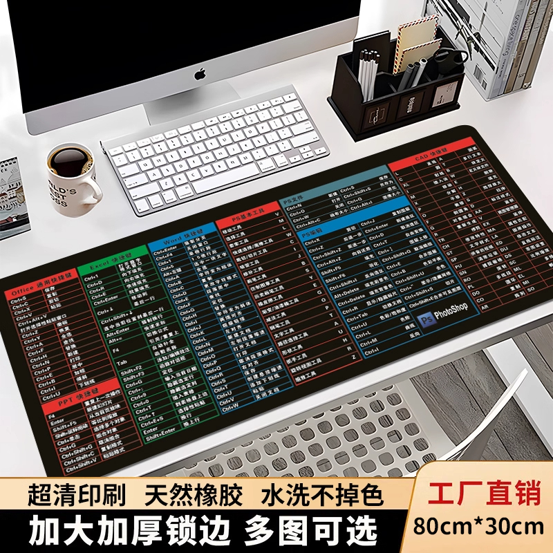 超大号鼠标垫办公电脑键盘垫书桌垫ps快捷键大全cad电竞护腕垫子