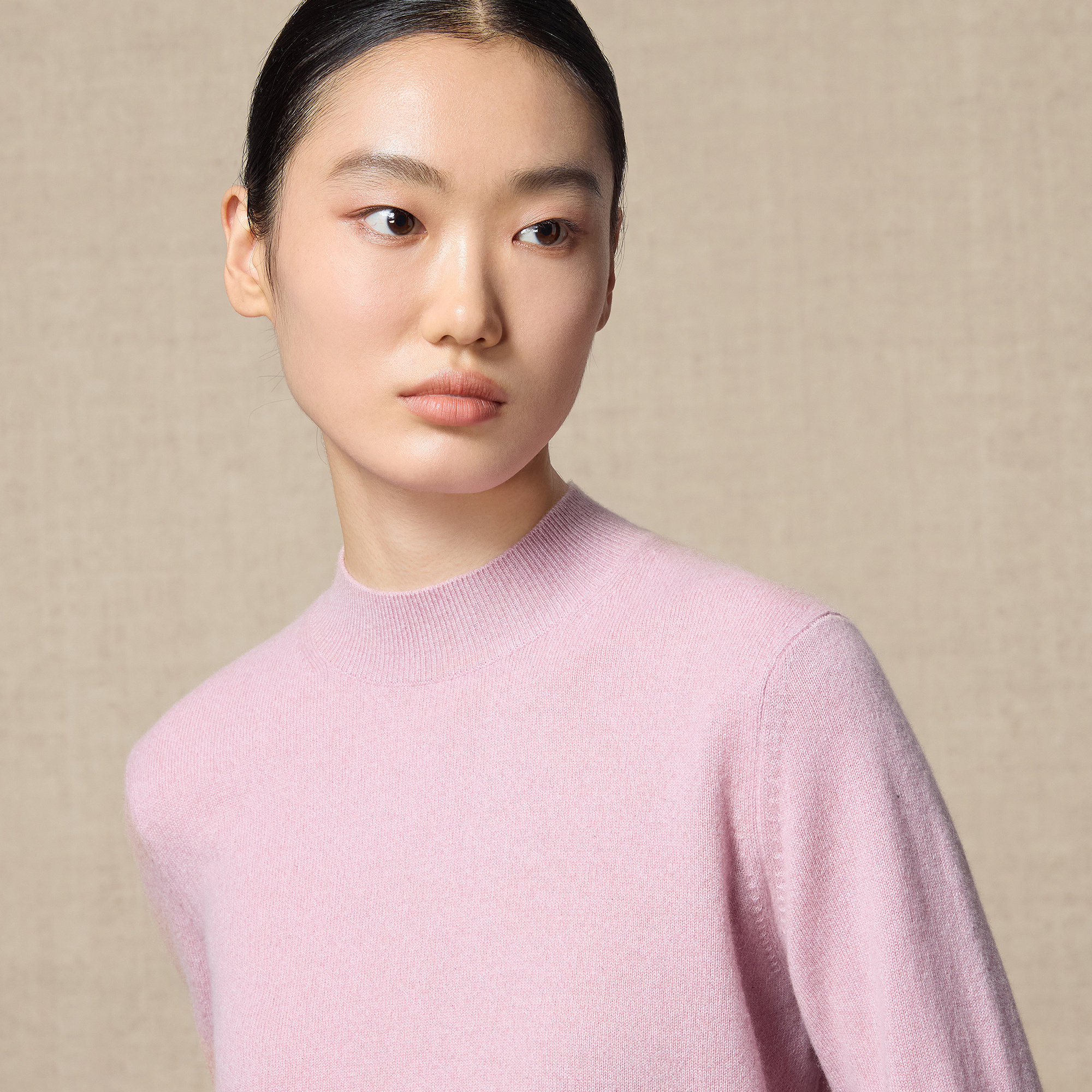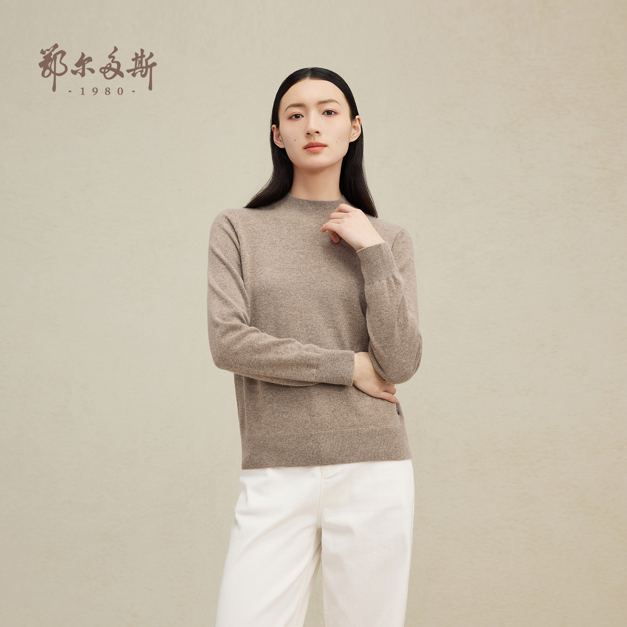 秋冬新款 鹿王羊绒衫 女士半高领平针纯色套头轻薄百搭打底针织衫