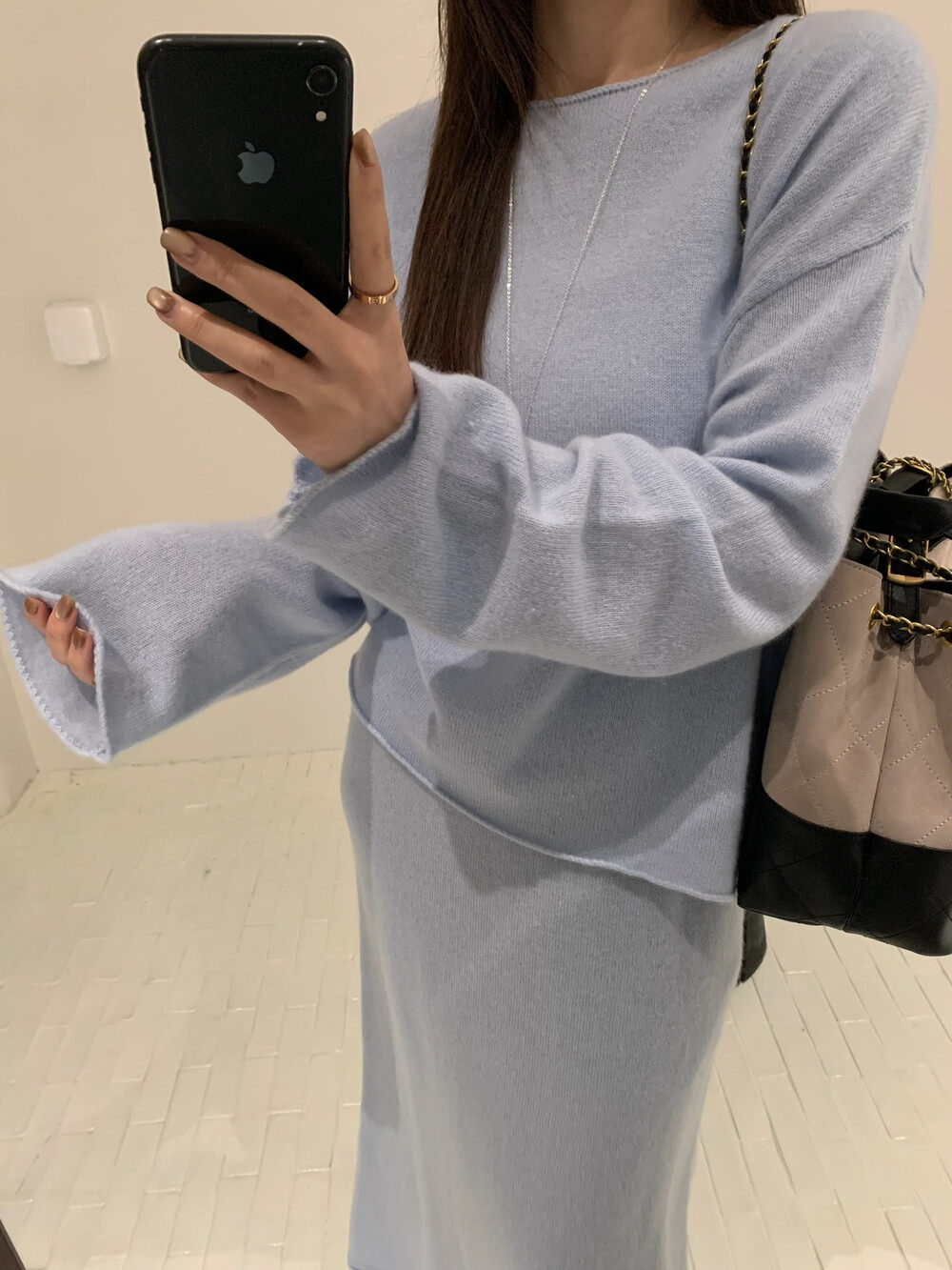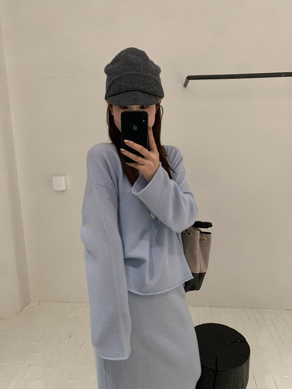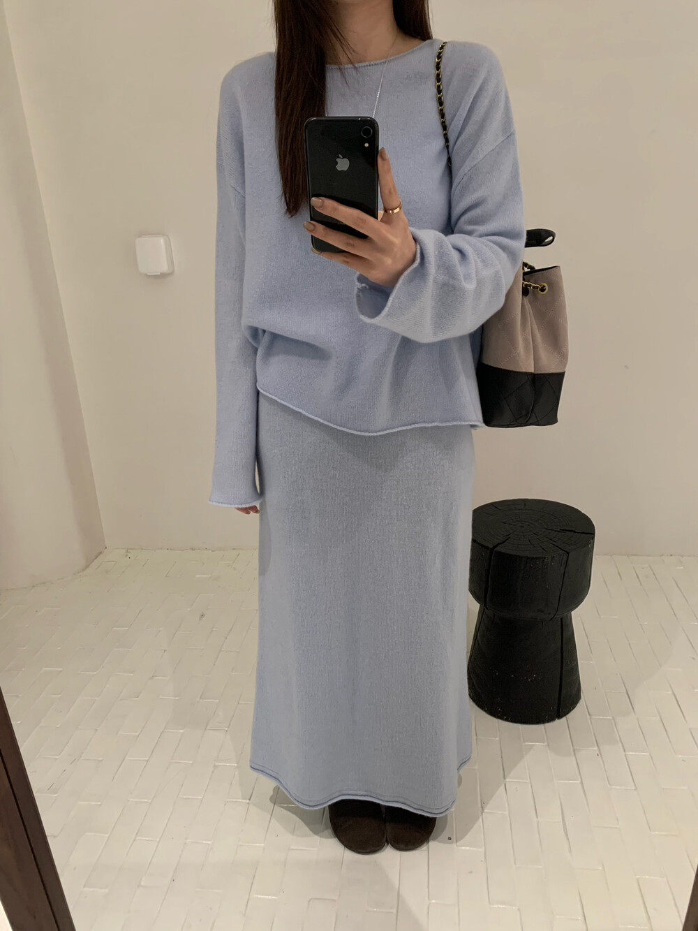 直筒半身裙套装 喜欢 羊毛针织衫 BLANC秋款 女 慵懒自在ATELIER