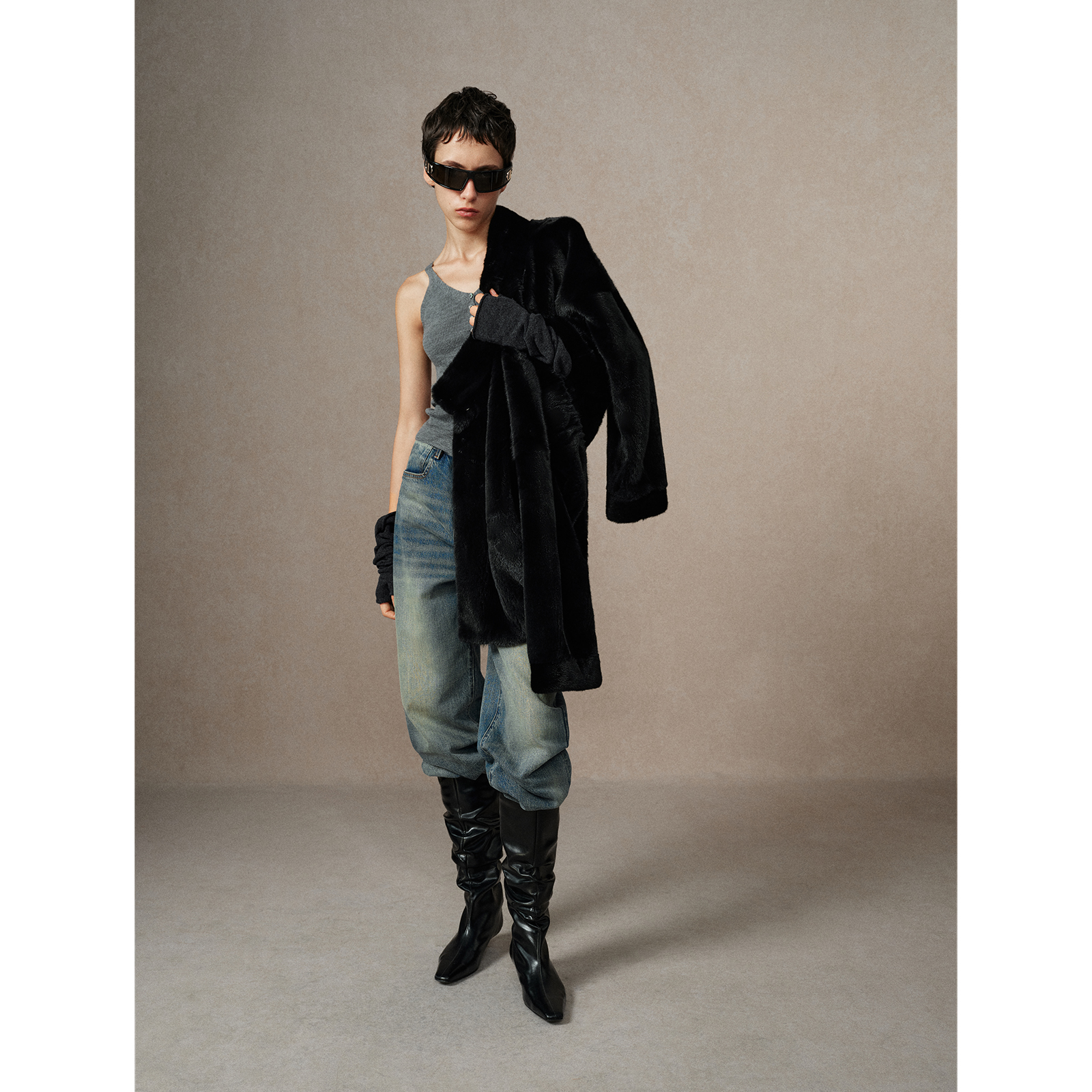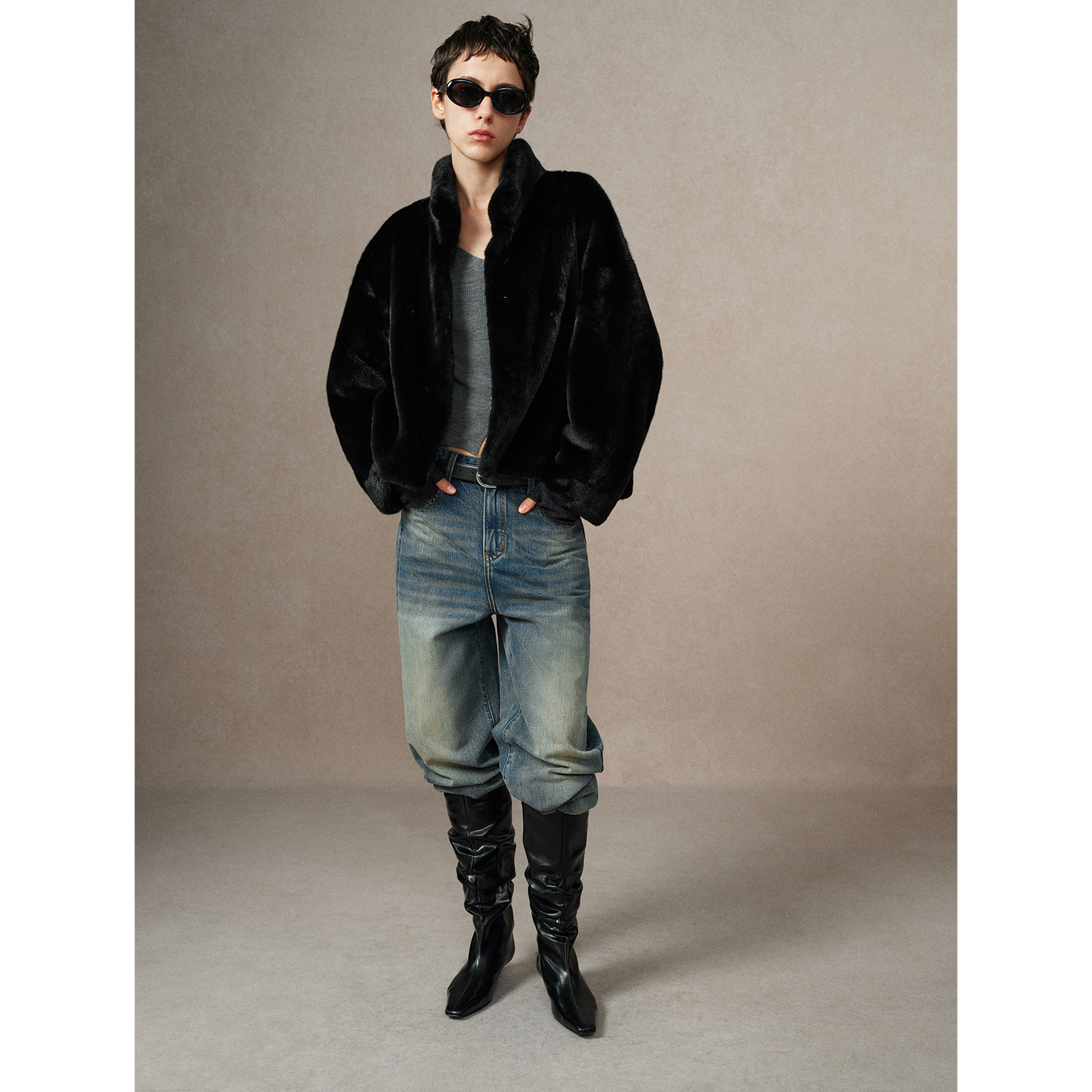 短款 Gods 24AW原创暗黑重工斜襟拉链修身 上帝计划 皮草夹克 plan