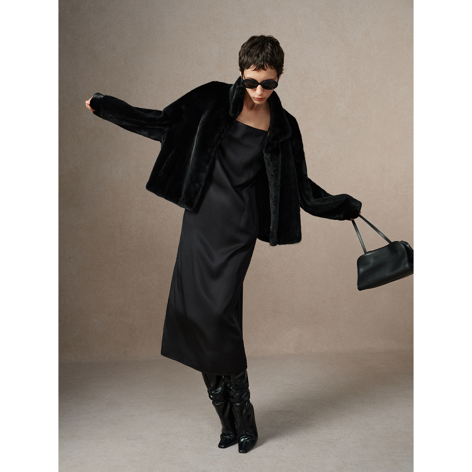 Fabrique香草绵羊毛泰迪绒感学院风连帽环保皮草外套 秀场同款