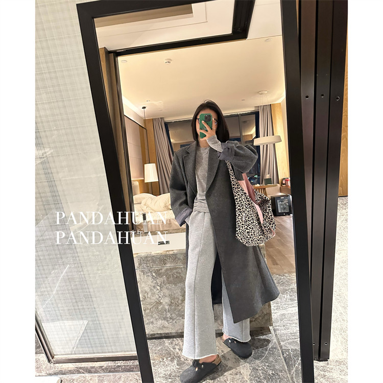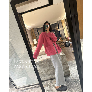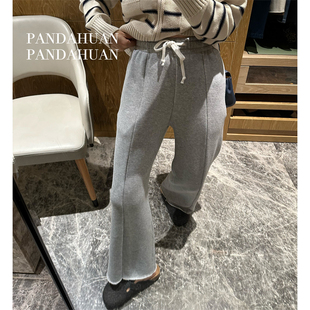 独家心头爱 女 灵地丝羊毛_中缝显腿直软垂Q弹厚毛圈毛边休闲卫裤
