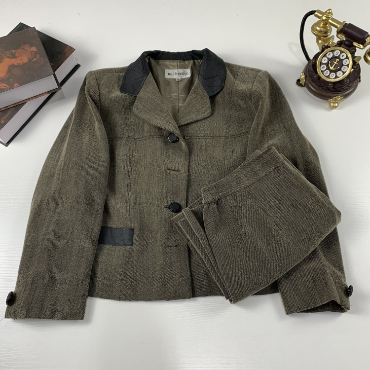 447 瑕疵款 vintage古着日制女士羊毛秋冬套装 西昭和港风复古女套装